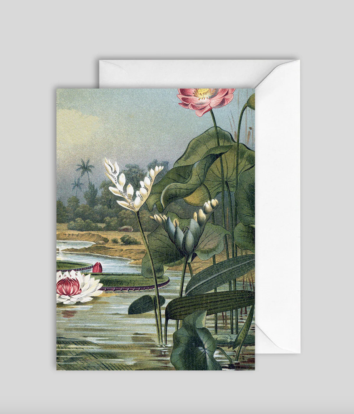 kort - vannblomster. Kortet er trykt på teksturert FSC-merket 270 gsm kartong, individuelt pakket med en hvit resirkulert konvolutt.