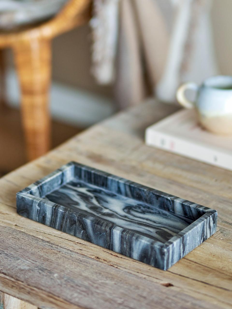 Feliza fat fra Bloomingville er laget av vakker mørkegrå marmor, noe som gir det et eksklusivt utseende. Den klassiske rektangulære formen gjør det perfekt for oppbevaring av parfymer og såper på badet, i kjøkkenet for oljer eller en blanding av lysholdere og dekorative gjenstander i stuen - du bestemmer. Skjønnheten med naturstein er at ingen to stykker er helt like. Hver er et unikt kunstverk smidd av Moder Jord gjennom årtusener ved bruk av varme, trykk og en rekke ulike mineraler og organiske materialer. Måten disse mineralene legger seg i steinen er det som forårsaker det enorme utvalget av farger, mønstre, teksturer og årer i hver plate.
