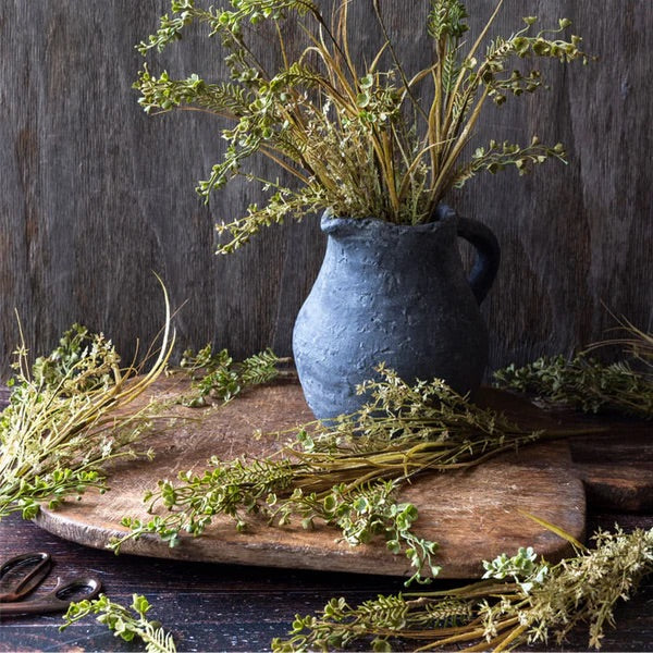 Meadow Buck grass fra Abigail Ahern. Denne delikate bukkegresset er en del av Abigails nye samling av innhøstede elementer. Denne vakre stilken i sin stormfulle farge vil tilføre dybde til vasen din. Sett en kvist i en vase for enkel eleganse eller par den med andre blomster og magnoliagrener. Vakkert trådd gjennom kranser og girlandere når vinteren kommer.