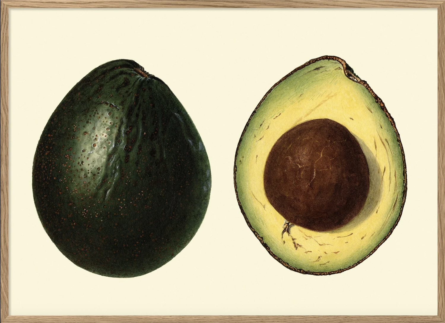 Frø kommer i en utrolig variasjon av innpakninger. Avokadoen er antagelig en av de mest populære fruktene i dag. Vi skapte avokado-trykket for å lyse opp ethvert kjøkken eller rom.