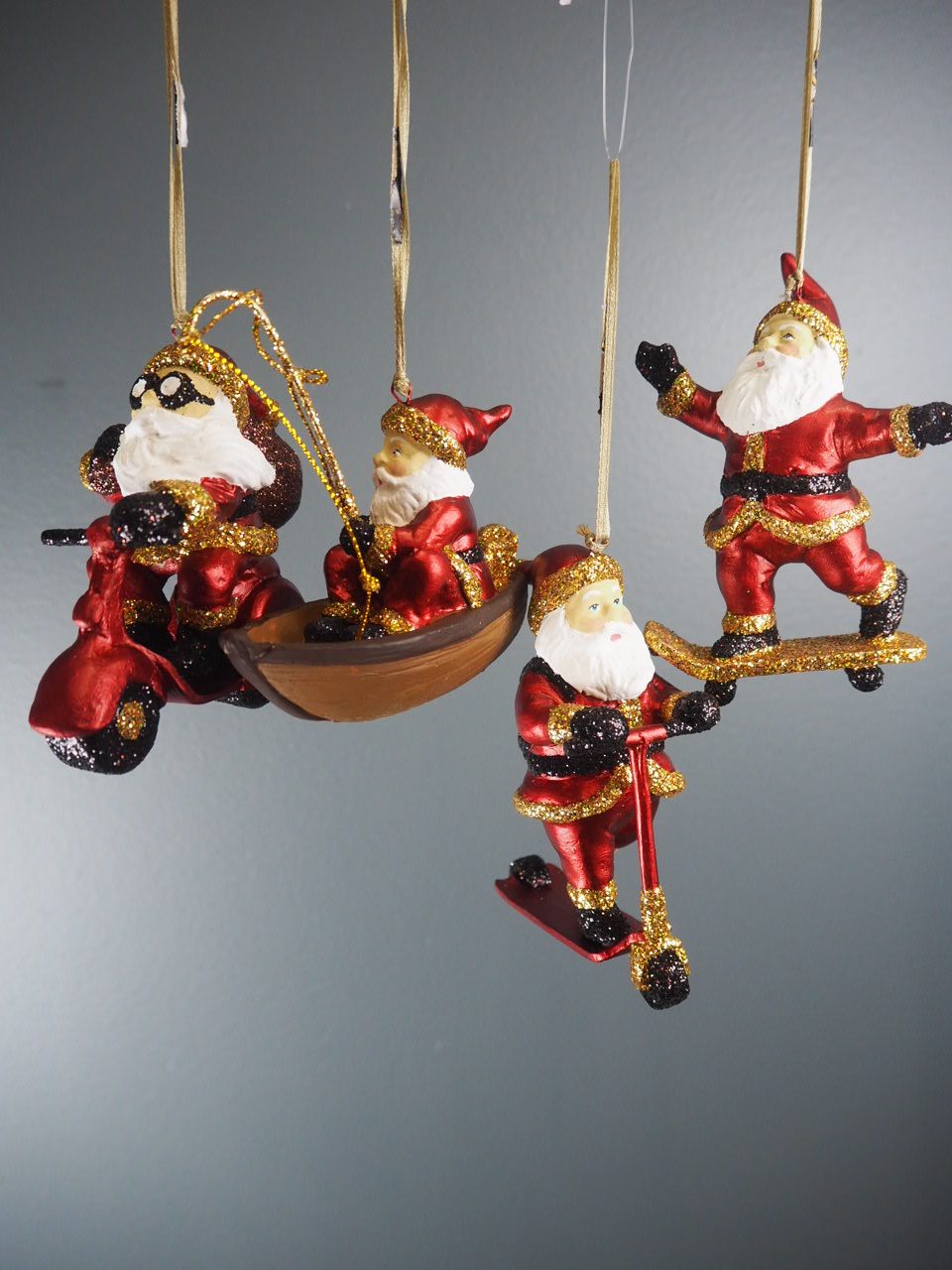 Nisser i aksjon! Disse herlige ornamentene av lekne nisser sprer glede og moro. Nissen er iført rødt antrekk med elegante detaljer i glitter. Denne nissen mestrer skateboardet sitt som en proff. Med en størrelse på 5x10 cm hver, passer disse nissene perfekt på juletreet ditt og legger til en ekstra dose sjarm og feststemning. La dem være en del av dine julefeiringer og minne deg om den lekne siden av julen.