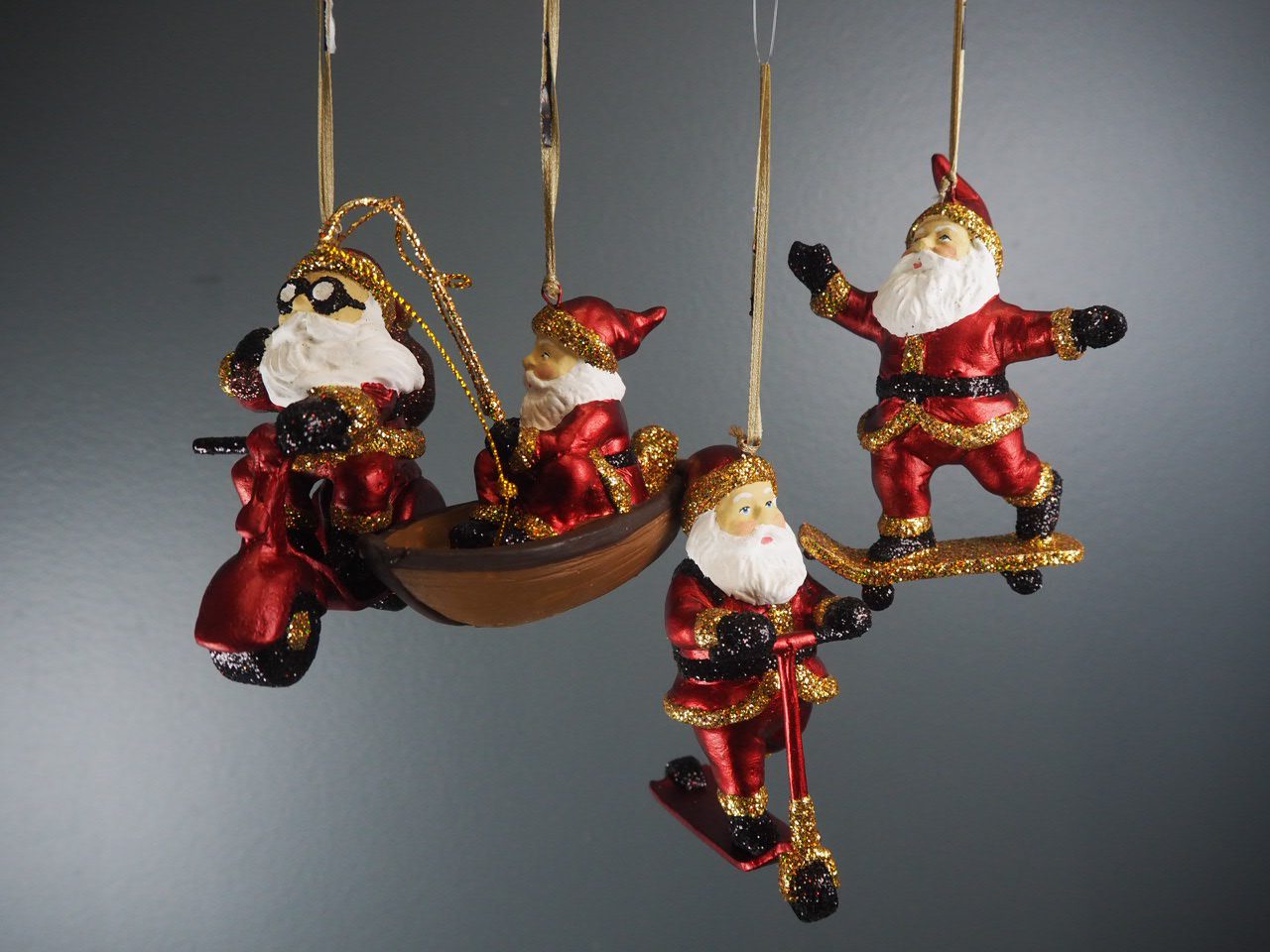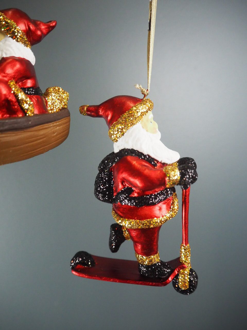 Nisser i aksjon! Disse herlige ornamentene av lekne nisser sprer glede og moro. Nissen er iført rødt antrekk med elegante detaljer i glitter. Denne nissen står på sparkesykkel, men vi tviler på at det er en elsparkesykkel! Med en størrelse på 5x10 cm hver, passer disse nissene perfekt på juletreet ditt og legger til en ekstra dose sjarm og feststemning. La dem være en del av dine julefeiringer og minne deg om den lekne siden av julen.