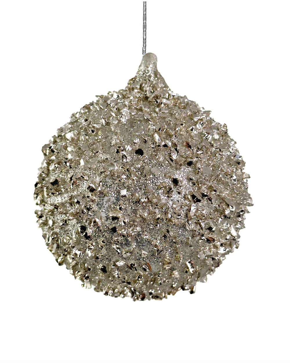 Julekule i glass. Sølvfarget med glitter. En festlig kule som skinne hele julen.
