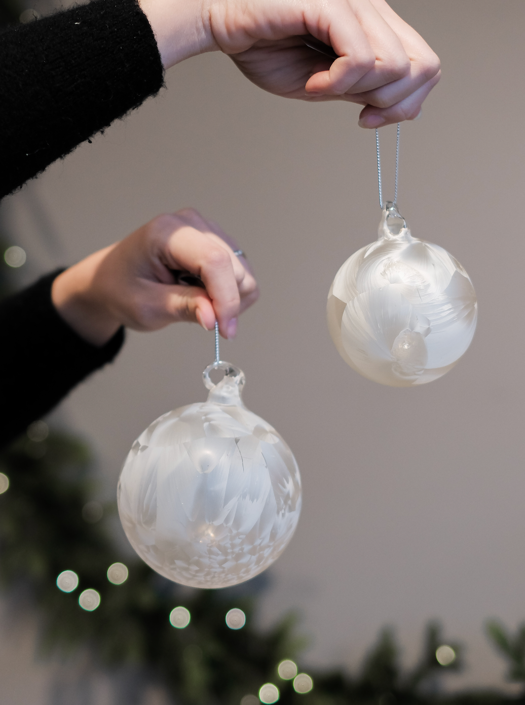 Julekule i frostet beigefarget glass. En tidløs julekule med et nostalgisk, elegant uttrykk.