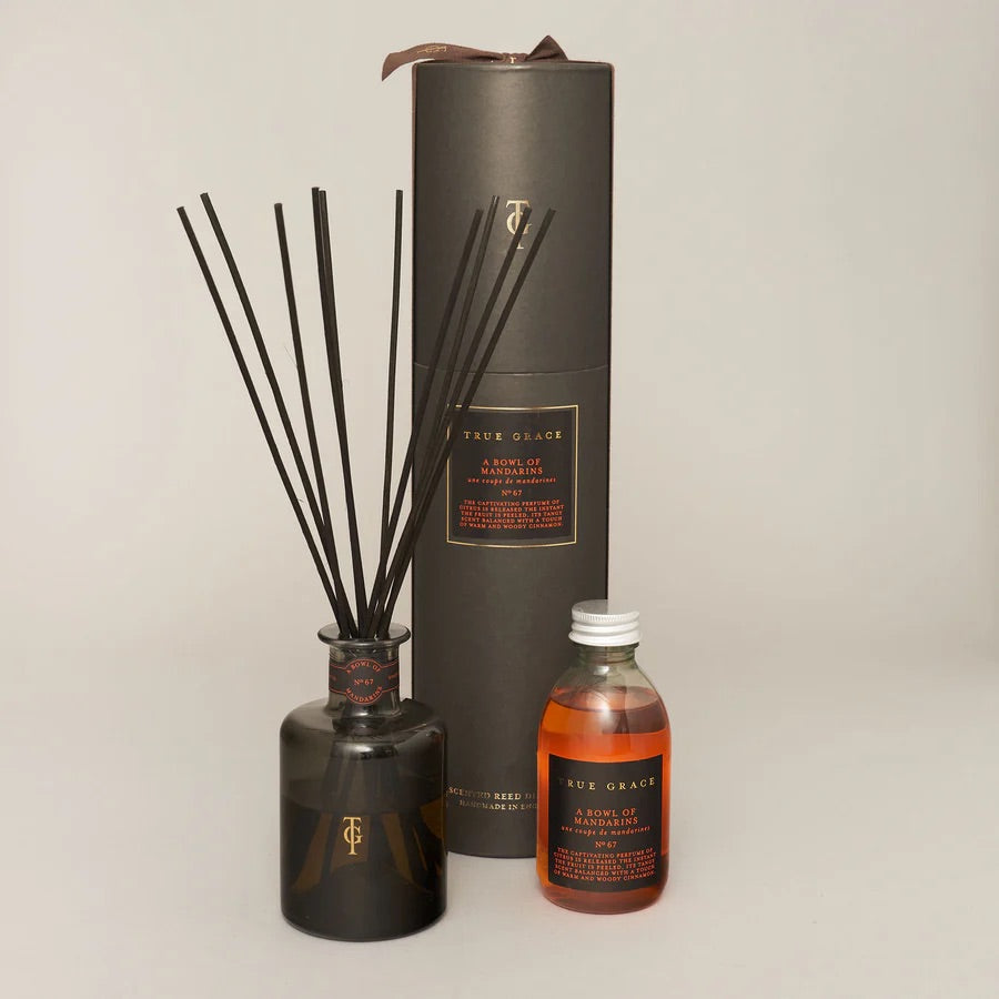 Fyll rommet med en frisk og sprudlende duft av sitrus. Vårt Bowl of Mandarins Diffuser Sett er laget i små partier på fabrikken vår i Wiltshire og har en duftkomposisjon av guaiaktre, mandarin, appelsinblomst og tangerin. Denne elegante diffusen er perfekt for å holde gangen eller kjøkkenet friskt.
