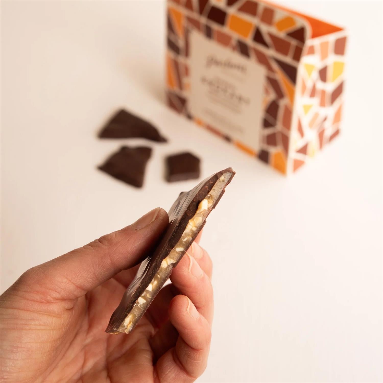 Oppdag sprø krokan, brutt i biter og dyppet i mørk sjokolade – en liten advarsel, det er helt umulig å spise bare én.