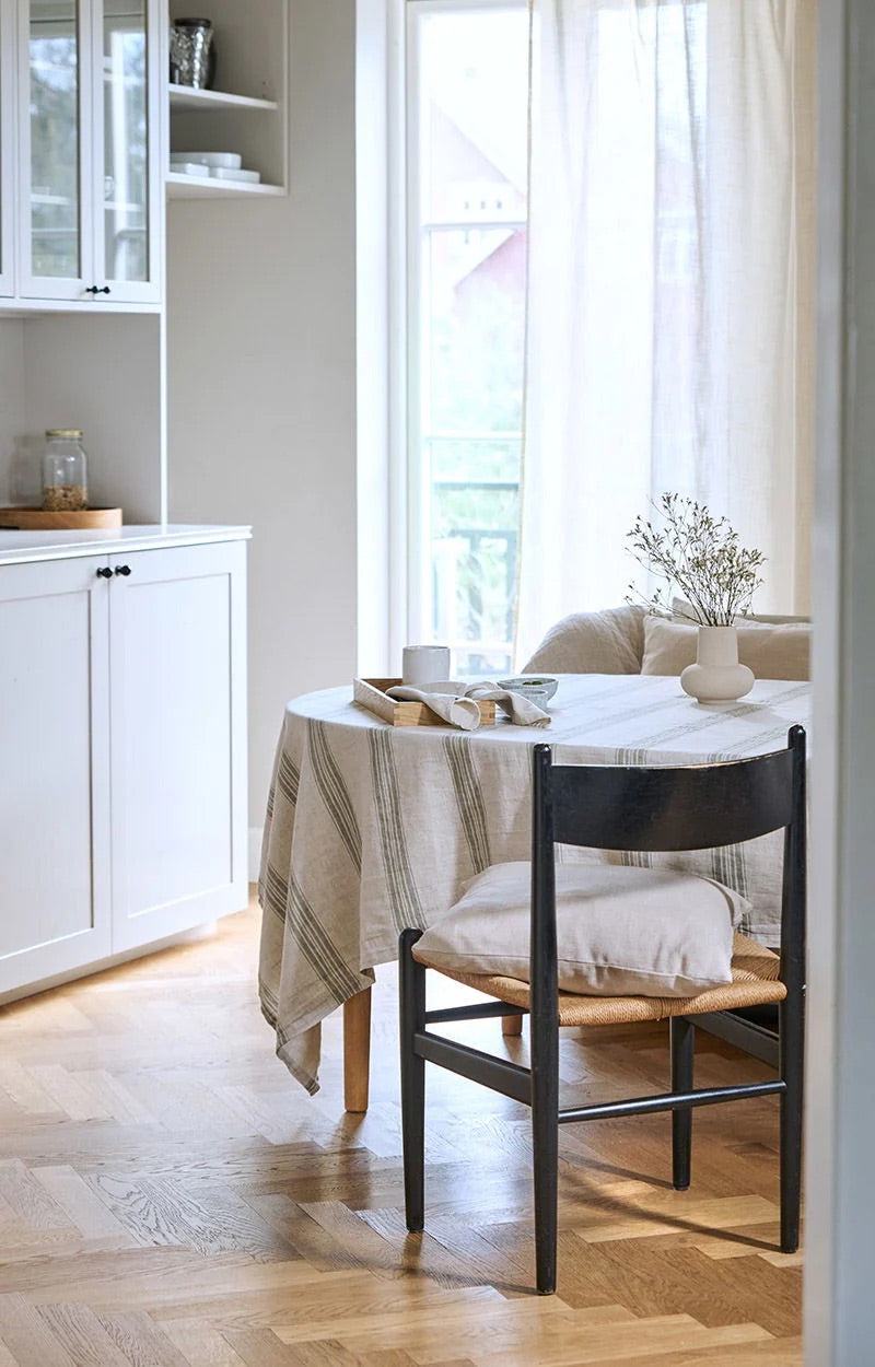 Gi bordet en avslappet og tidløs eleganse med Arles duk, laget i en raffinert blanding av 60 % bomull og 40 % lin. Den naturlige linteksturen og de lett falmede stripene gir dukens klassiske, men samtidig uformelle uttrykk, mens den lette krøllede effekten skaper en varm og innbydende følelse. Dukens garment-washede finish gjør at den faller naturlig og er perfekt for både hverdagslige måltider og mer avslappede selskaper.