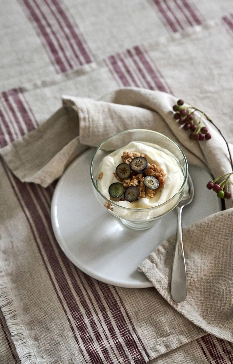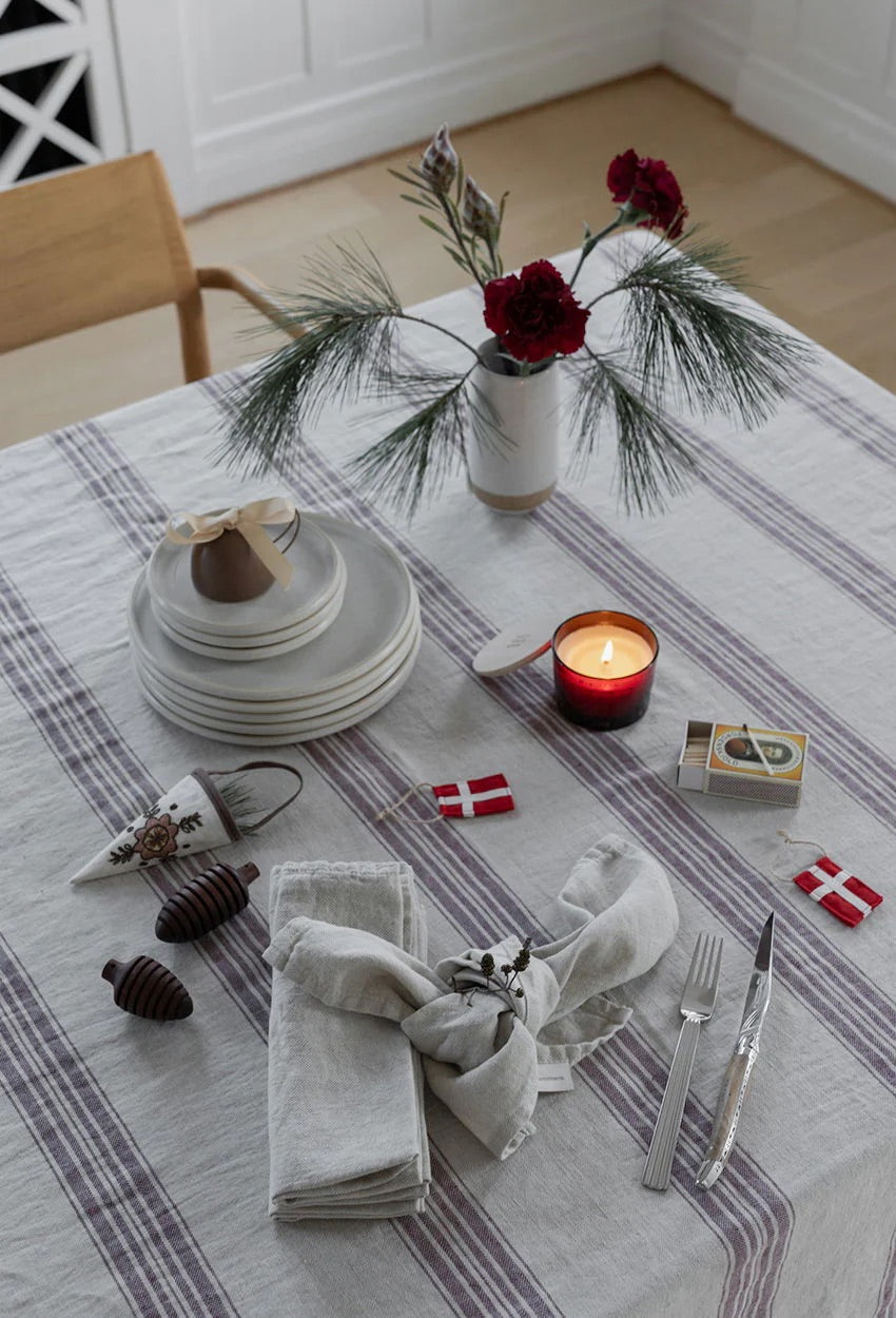 Gi bordet en avslappet og tidløs eleganse med Arles duk, laget i en raffinert blanding av 60 % bomull og 40 % lin. Den naturlige linteksturen og de lett falmede stripene gir dukens klassiske, men samtidig uformelle uttrykk, mens den lette krøllede effekten skaper en varm og innbydende følelse. Dukens garment-washede finish gjør at den faller naturlig og er perfekt for både hverdagslige måltider og mer avslappede selskaper.