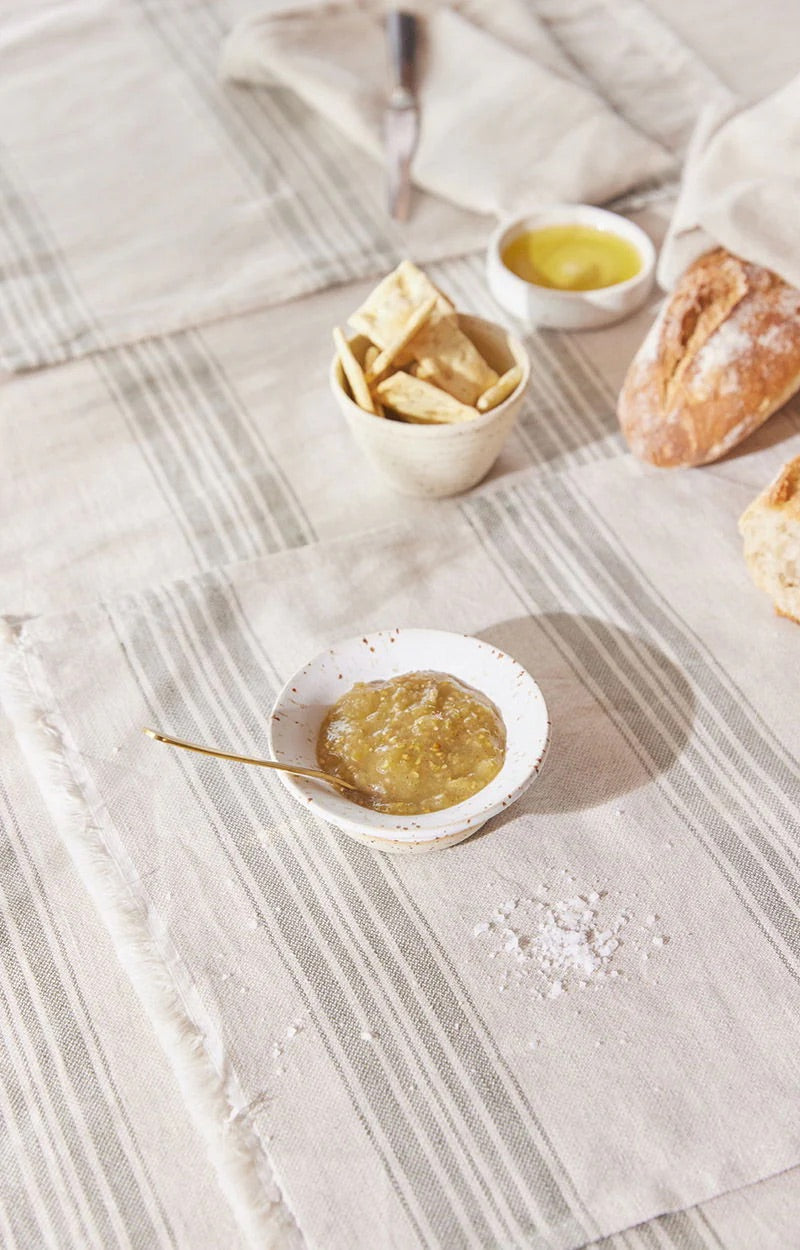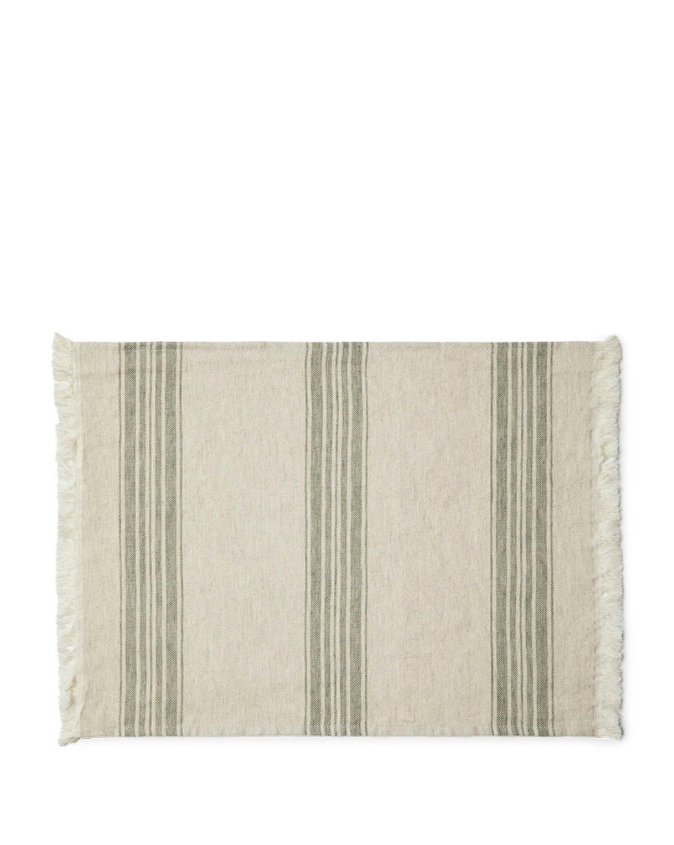 Fullfør borddekningen med Arles bordbrikker, laget i en deilig blanding av lin og bomull. Den naturlige lintekturen og de lett falmede stripene gir et klassisk, men samtidig avslappet uttrykk, mens frynsene på to sider tilfører en dekorativ detalj. Bordbrikkene er garment-washede for en naturlig og myk finish, og kommer i pakke med to – perfekte til både hverdagsbruk og når du har gjester. Kan brukes både som bordbrikker eller tøyservietter.