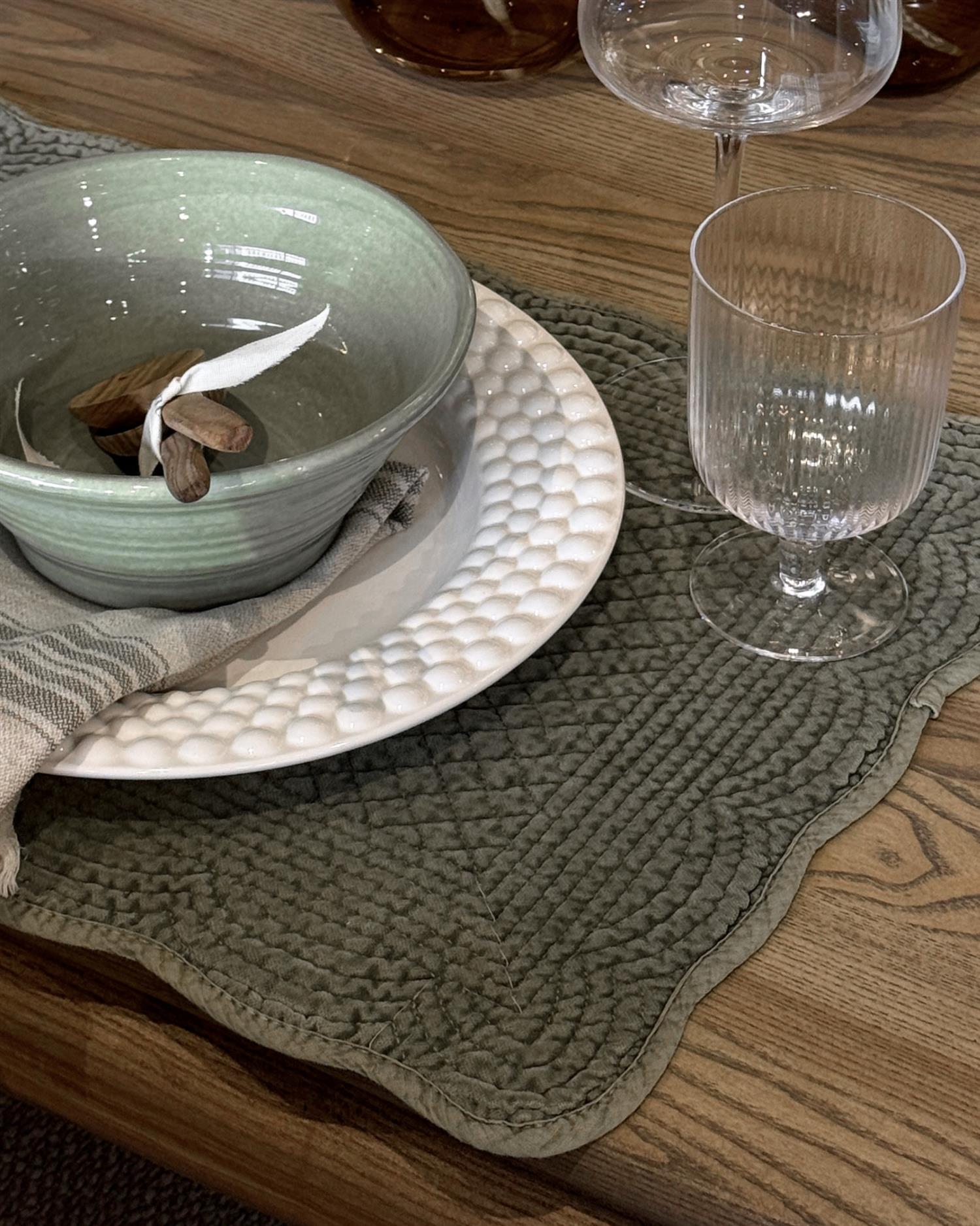 Avlang spisebrikke med quiltet mønster i bomullsvelour.