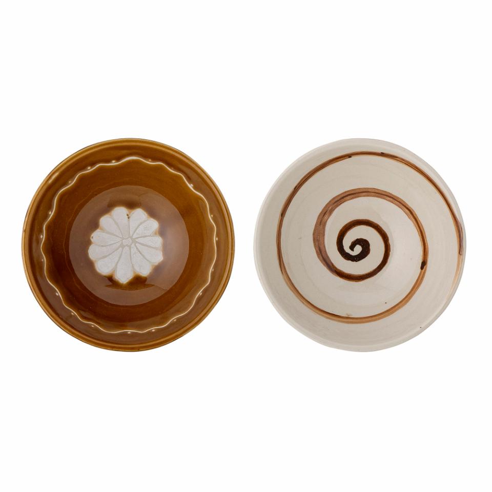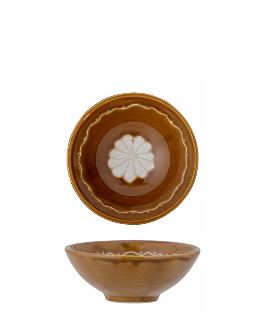Heikki skål, brun med beige blomst Ø12x4,5cm