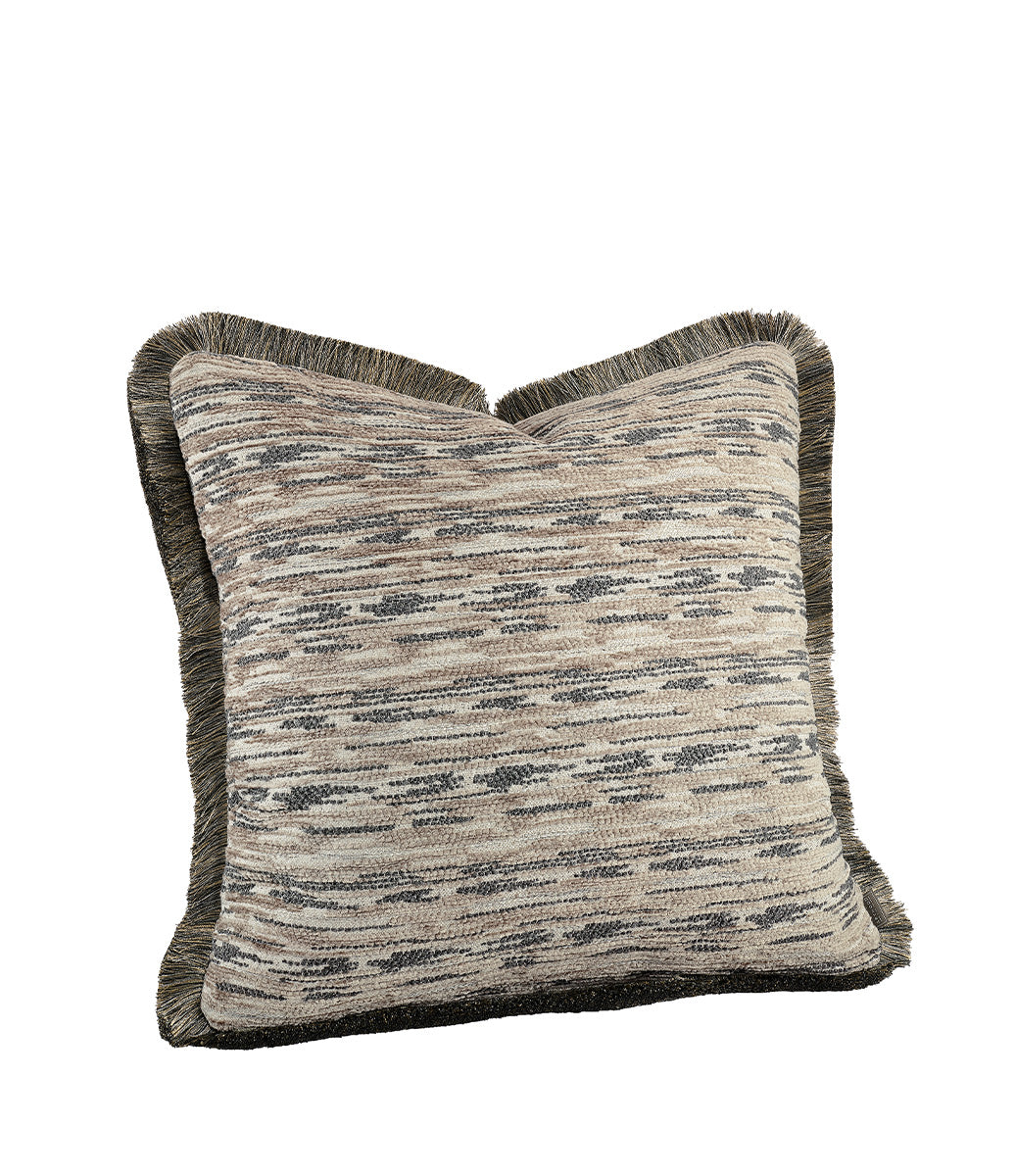 Gi hjemmet struktur og karakter med dette putetrekket i mønstret tekstil med levende vevstruktur. Det subtile, horisontale mønsteret skaper et harmonisk uttrykk, mens den dekorative franskanten rundt tilfører en klassisk og gjennomtenkt detalj. Putetrekket blir et stilfullt blikkfang i sofaen, lenestolen eller på sengen.