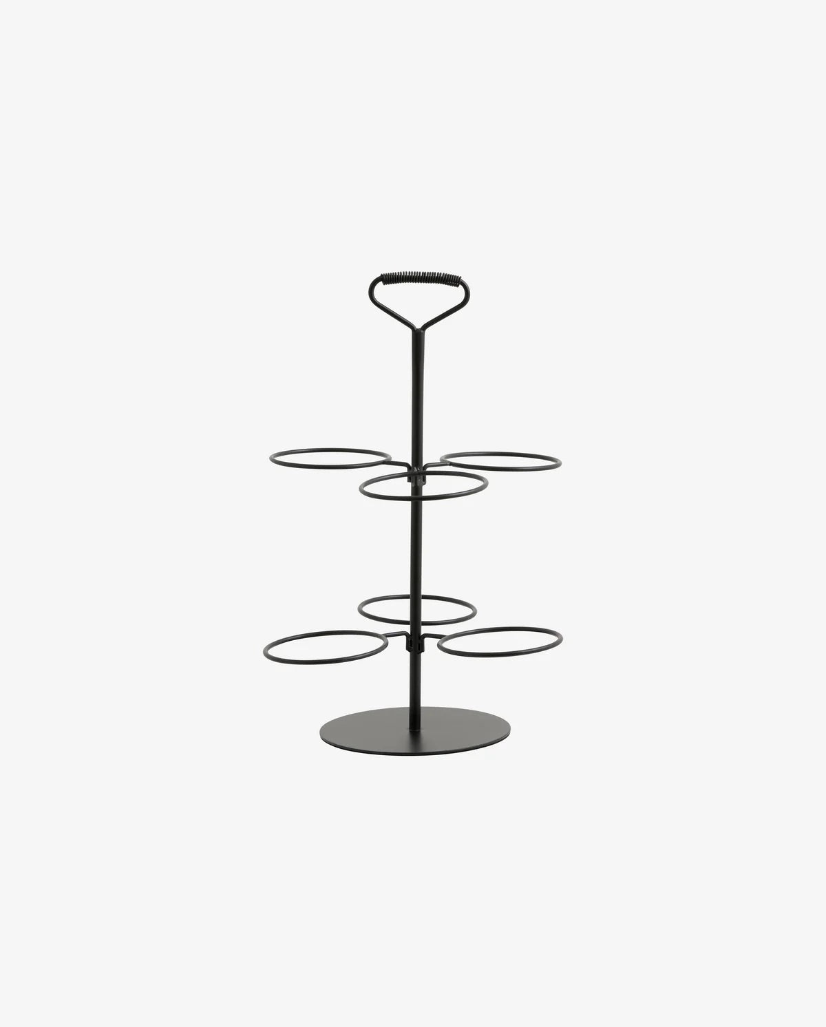 Primula er et stilrent serveringsstativ i pulverlakkert svart jern som tilfører høyde, struktur og balanse til bordet. Den grafiske designen og den stabile basen gjør det både dekorativt og praktisk – perfekt til tapas, snacks eller frokostfavoritter. Stativet er spesielt laget for å passe til boller og tallerkener fra Grainy- og Grawa-serien, og lar maten presenteres på en elegant måte.