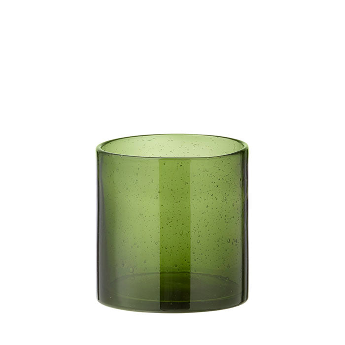 Denne Salon lyslykten er munnblåst i resirkulert glass og dekorert med små bobledetaljer som gir et levende og unikt uttrykk. Den kan brukes både som telysholder og til små blomsteroppsatser, og tilfører et subtilt spill av lys og tekstur til interiøret.
