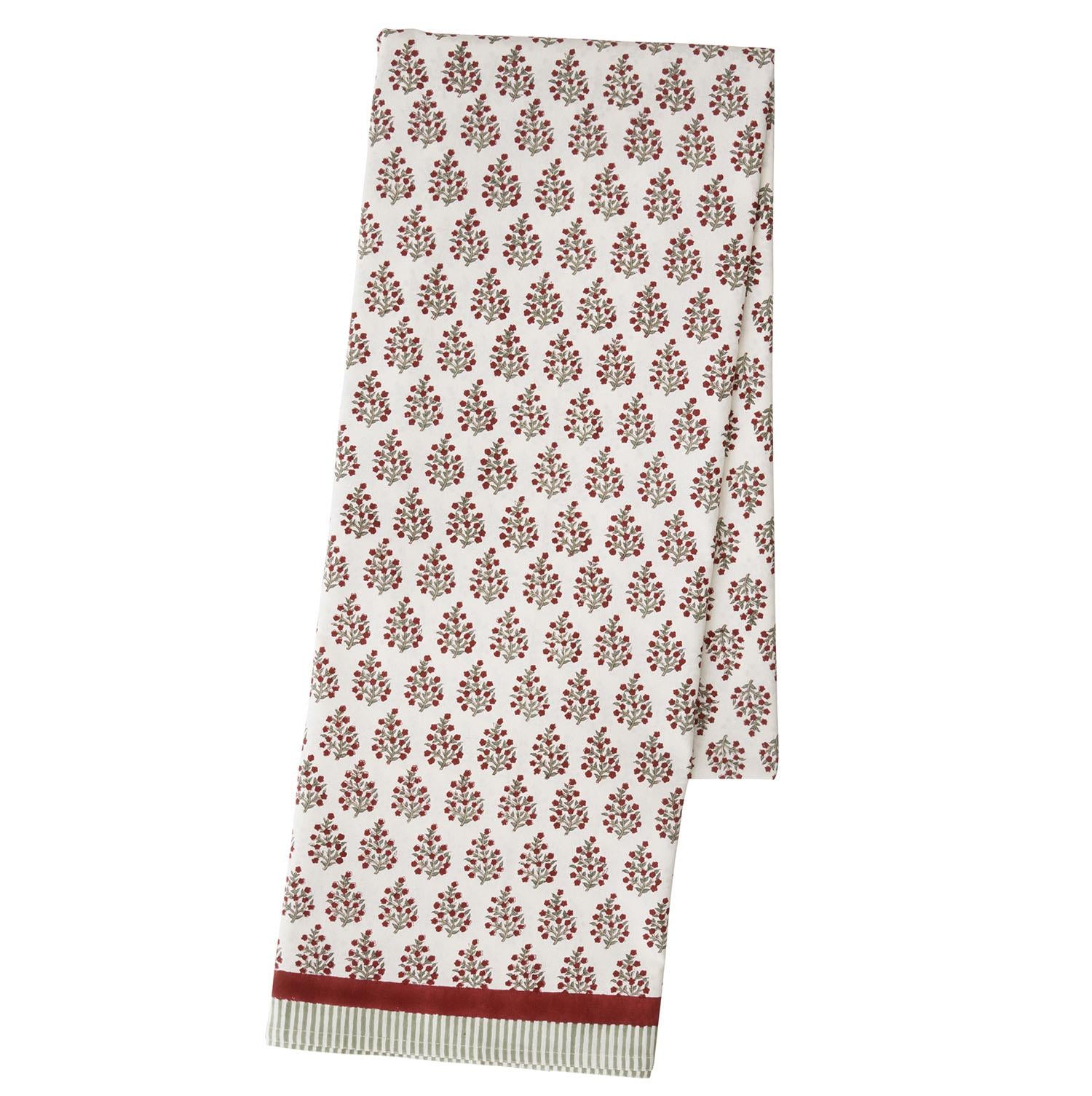 Duk med håndlaget blokktrykk i grønne nyanser. 100% bomull.