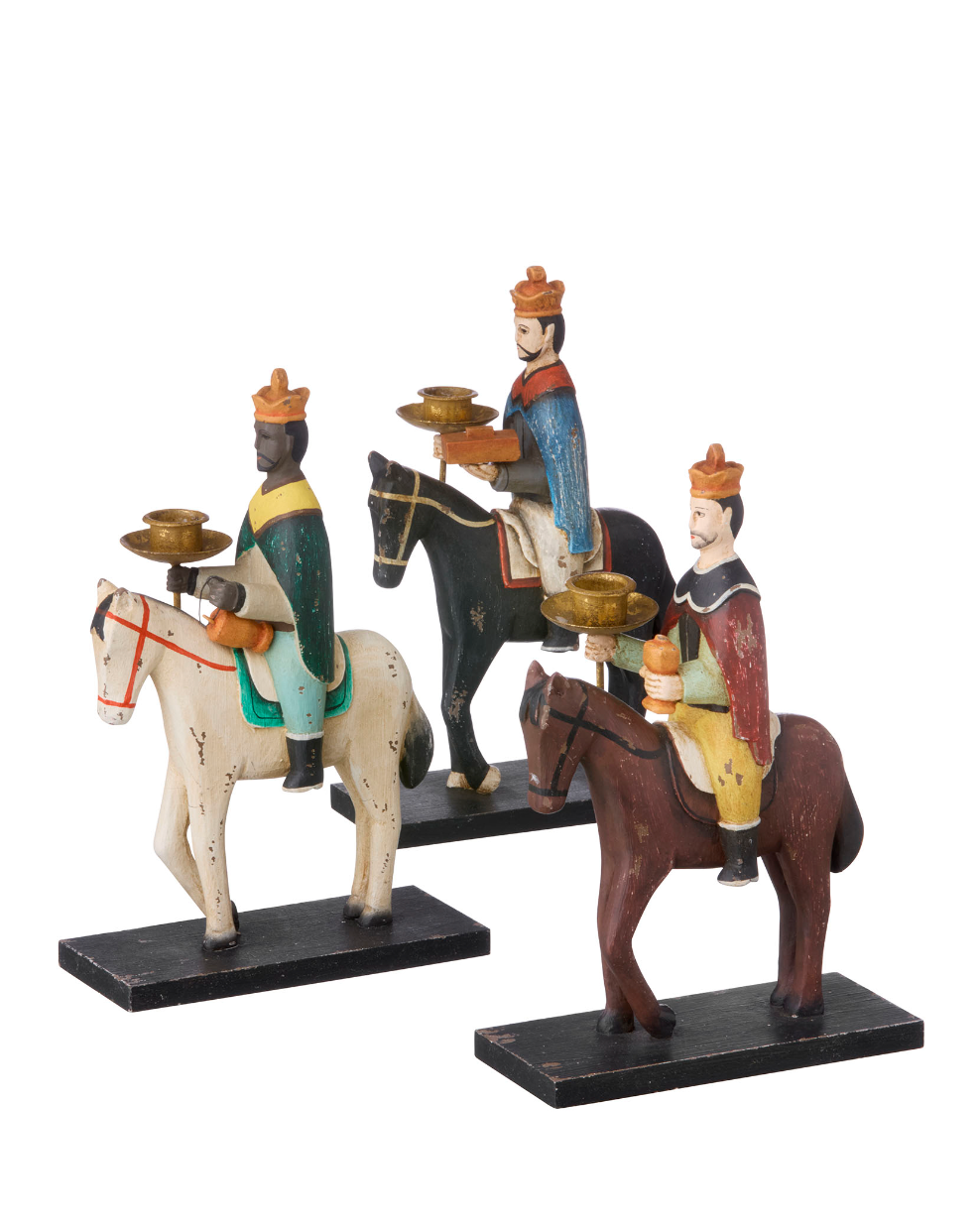Dette settet med tre Vise Men lysestaker er dekorert med intrikate, håndmalte detaljer som gir hvert stykke sitt eget særpreg og sjarm. Figurenes uttrykk og farger er nøye utført for å tilføre både skjønnhet og en følelse av tradisjon til hjemmet.