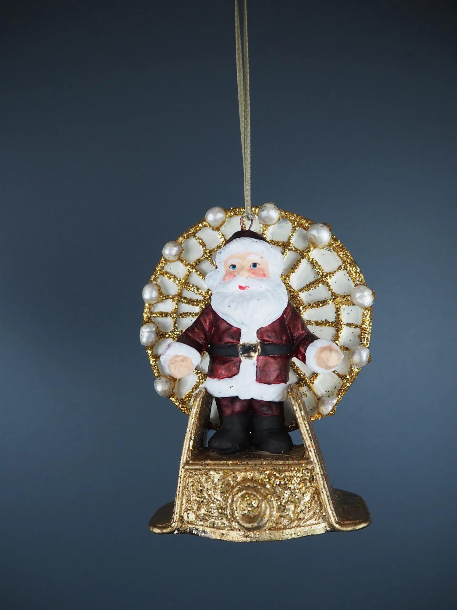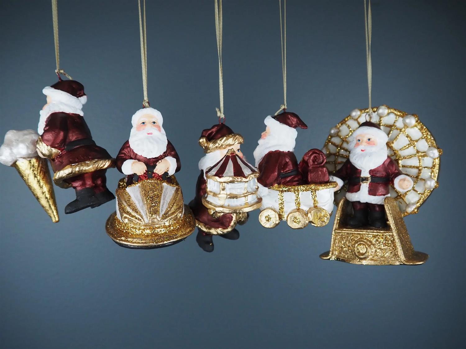 En skjønn, liten sirkusnisse står foran lykkehjul i vakker burgunder nissedrakt og detaljer i gull.