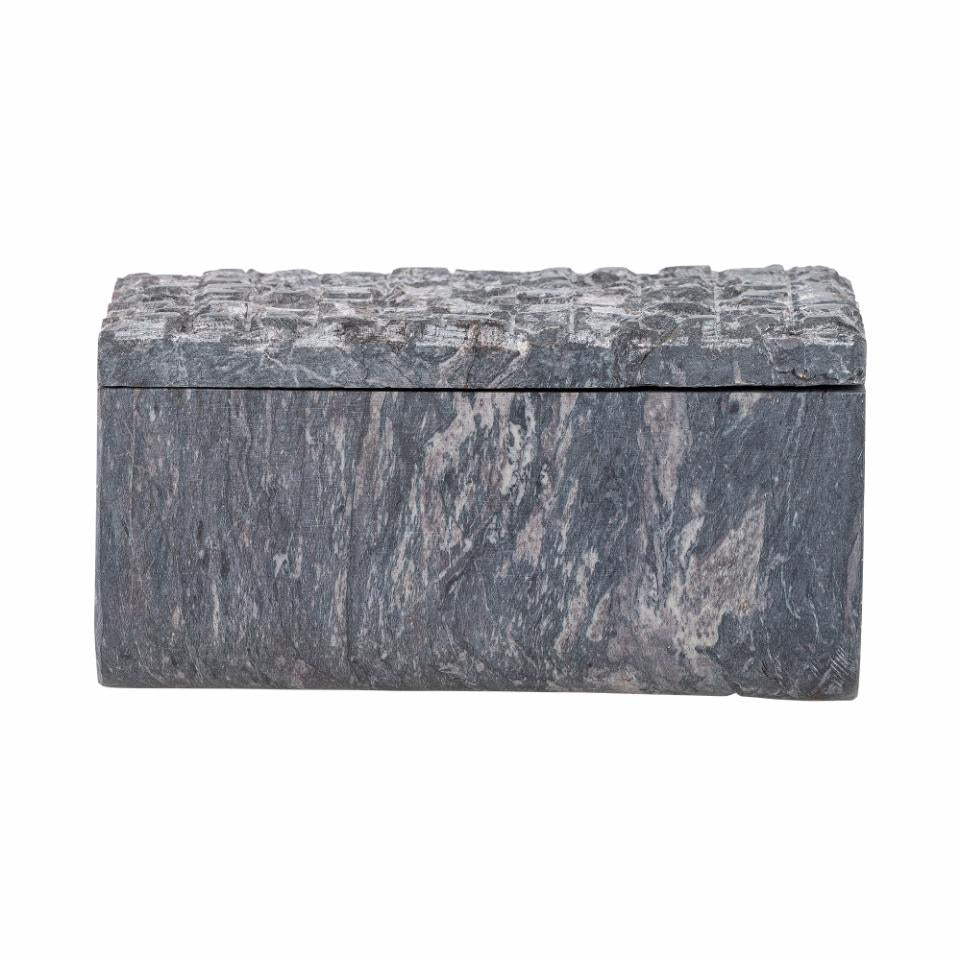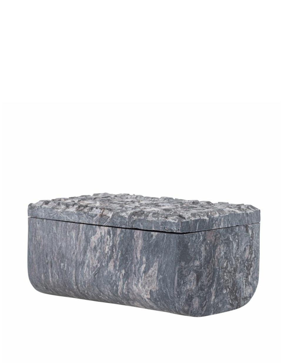 Nubia boks er utskåret i kleberstein med et karakteristisk lokk i rillet struktur. Den polerte overflaten og natursteinens unike årer gjør hver boks helt spesiell – ingen er helt like.