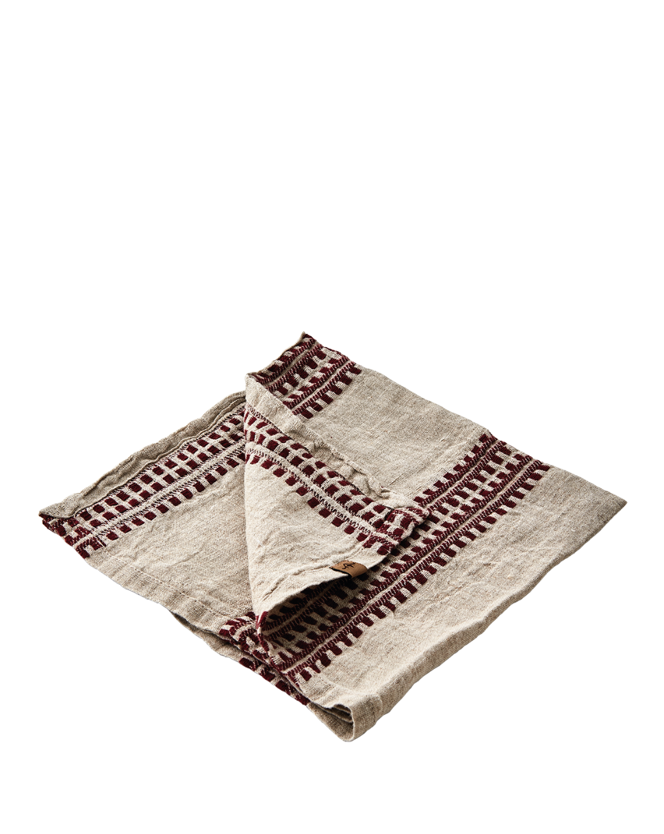 Noel tøyserviett fra Affari med nostaligske striper i rød og lingrå. En koselig serviett til alle julens begivenheter.