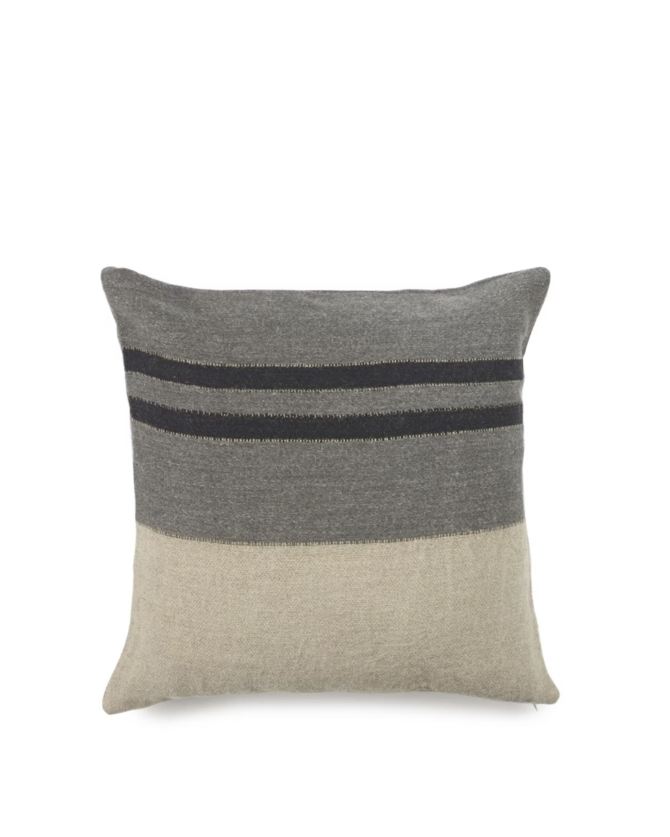 Black House pute fra Libeco kombinerer naturlige materialer og sofistikerte fargetoner for et tidløst uttrykk. Den dype fargen Charcoal balanseres vakkert av lyse naturnyanser og mørke striper, som gir puten et rolig og harmonisk preg.