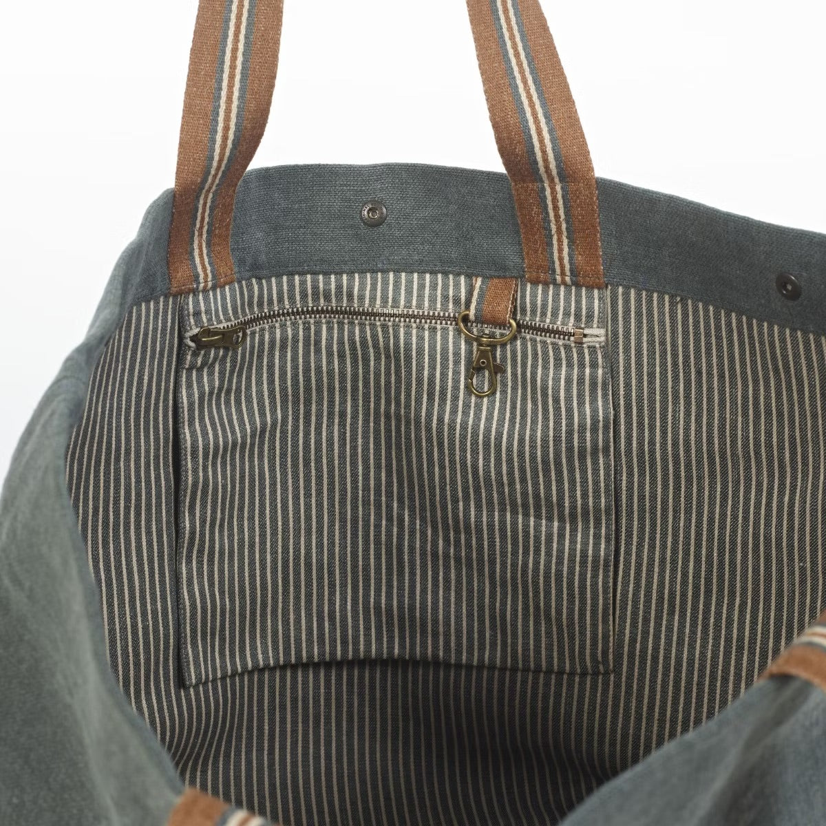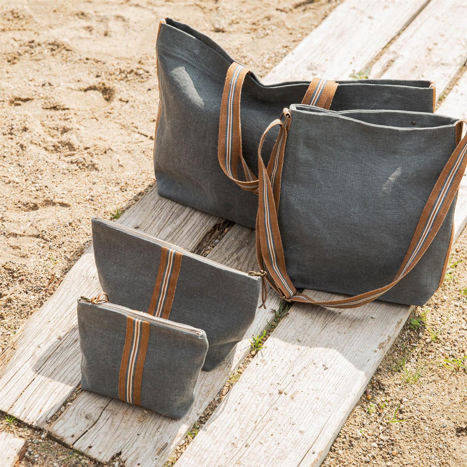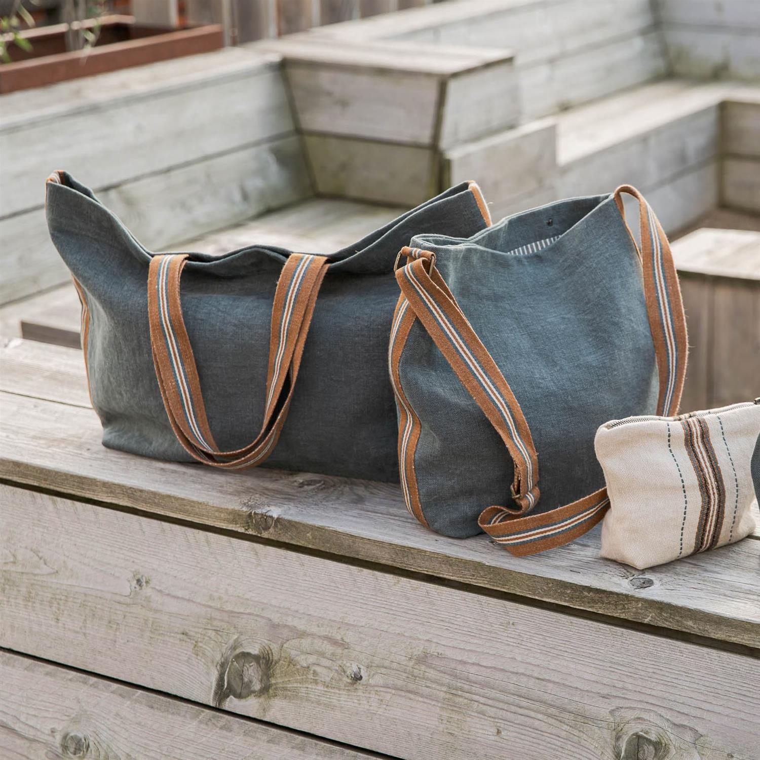 Atlas bag fra Libeco er en romslig og stilren veske laget av 100 % lin i den myke, blågrå fargen River. De karakteristiske stripene og hankene i natur- og rusttoner tilfører et vakkert, håndverksmessig uttrykk. Innsiden er helfôret med stripemønstret lin i River og naturfarget, og har både glidelåslomme og liten krok for nøkler.