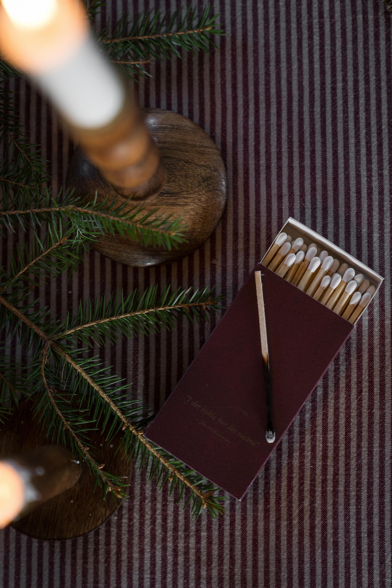 En stilfull og praktisk fyrstikkeske som blir et lekkert innslag i interiøret. Den dype rødfargen gir en varm og lun følelse – perfekt til stearinlys på mørke kvelder.