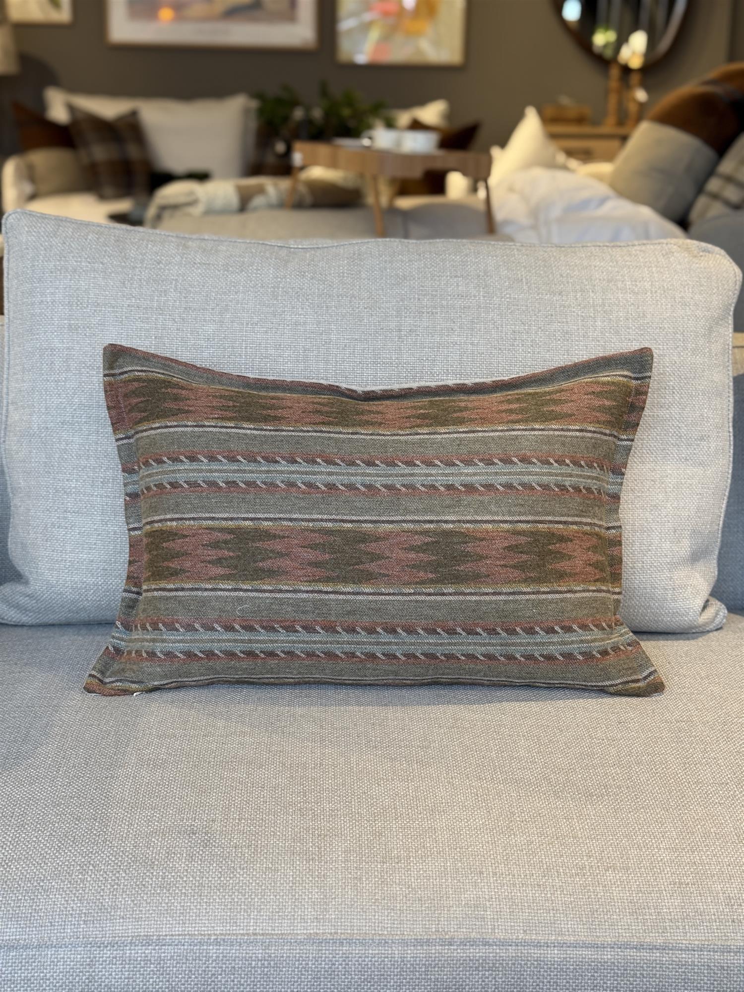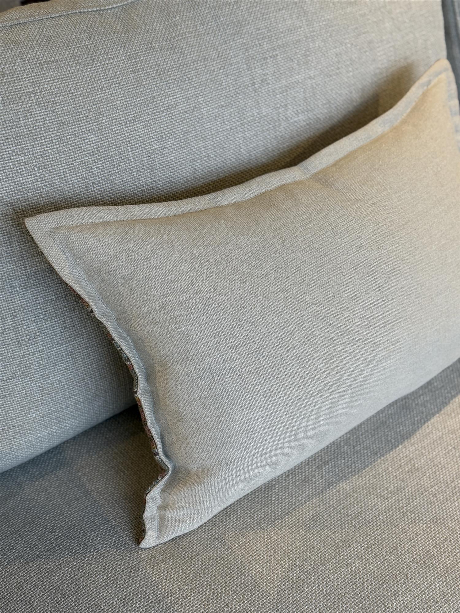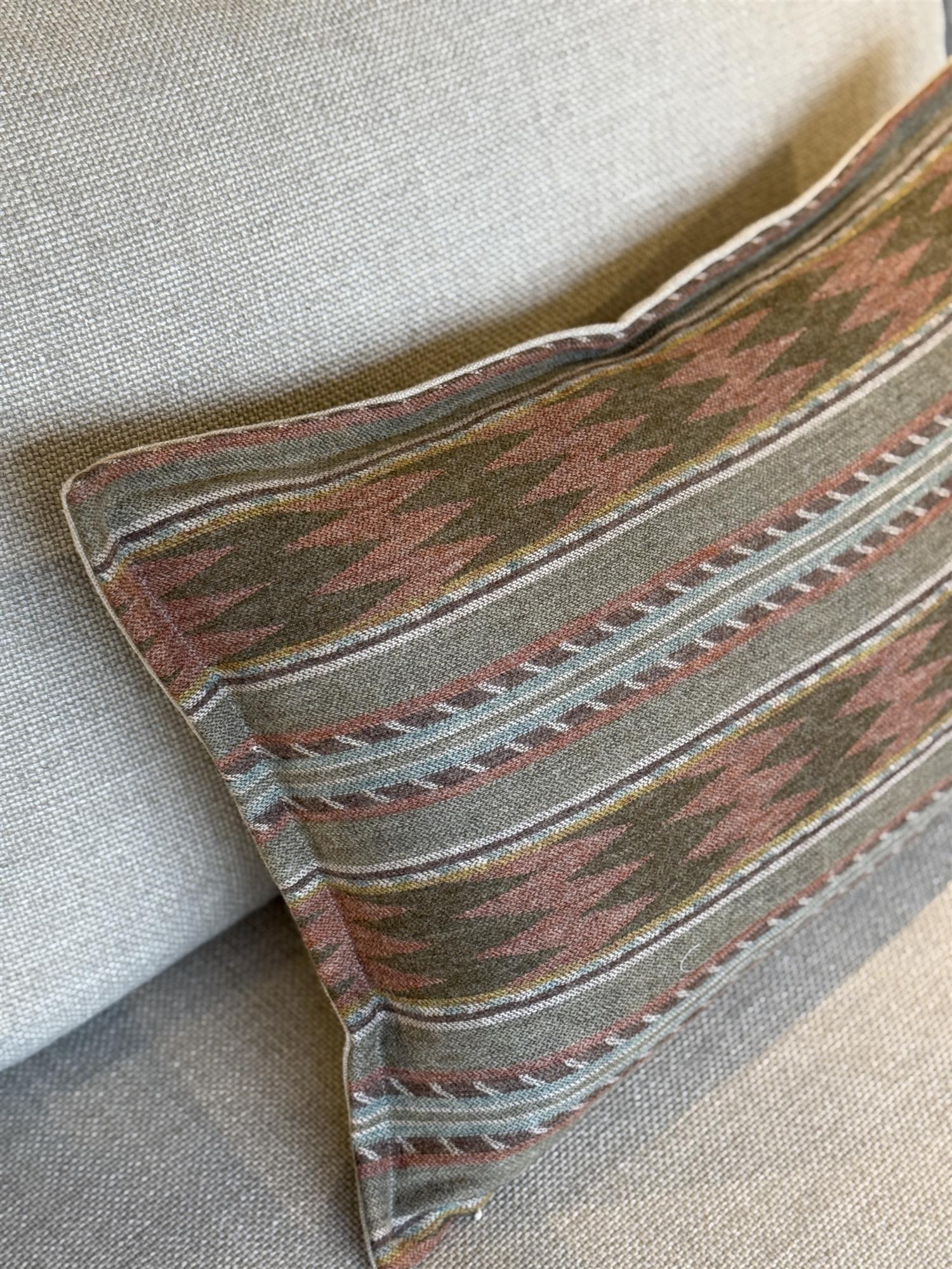 Denne eksklusive pynteputen fra W22s egen kolleksjon kombinerer håndverk og klassiske tekstiler i en elegant og tidløs design. Forsiden er sydd i et Mulberry-tekstil med rustikke, vevde mønstre i grønne, rustrøde og sandfargede toner, mens baksiden er i Inzimi fra Nevotex – et mykt lintekstil som gir et rolig og harmonisk uttrykk.