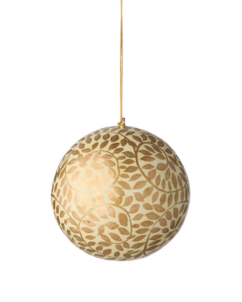 Disse vakre Gaya julekulene er håndmalt i India, noe som gir hver kule sitt helt unike uttrykk og sjarm. Laget i papir-maché og dekorert i gull, tilfører de et stemningsfullt og håndverksmessig preg til juletreet eller julepynten din.