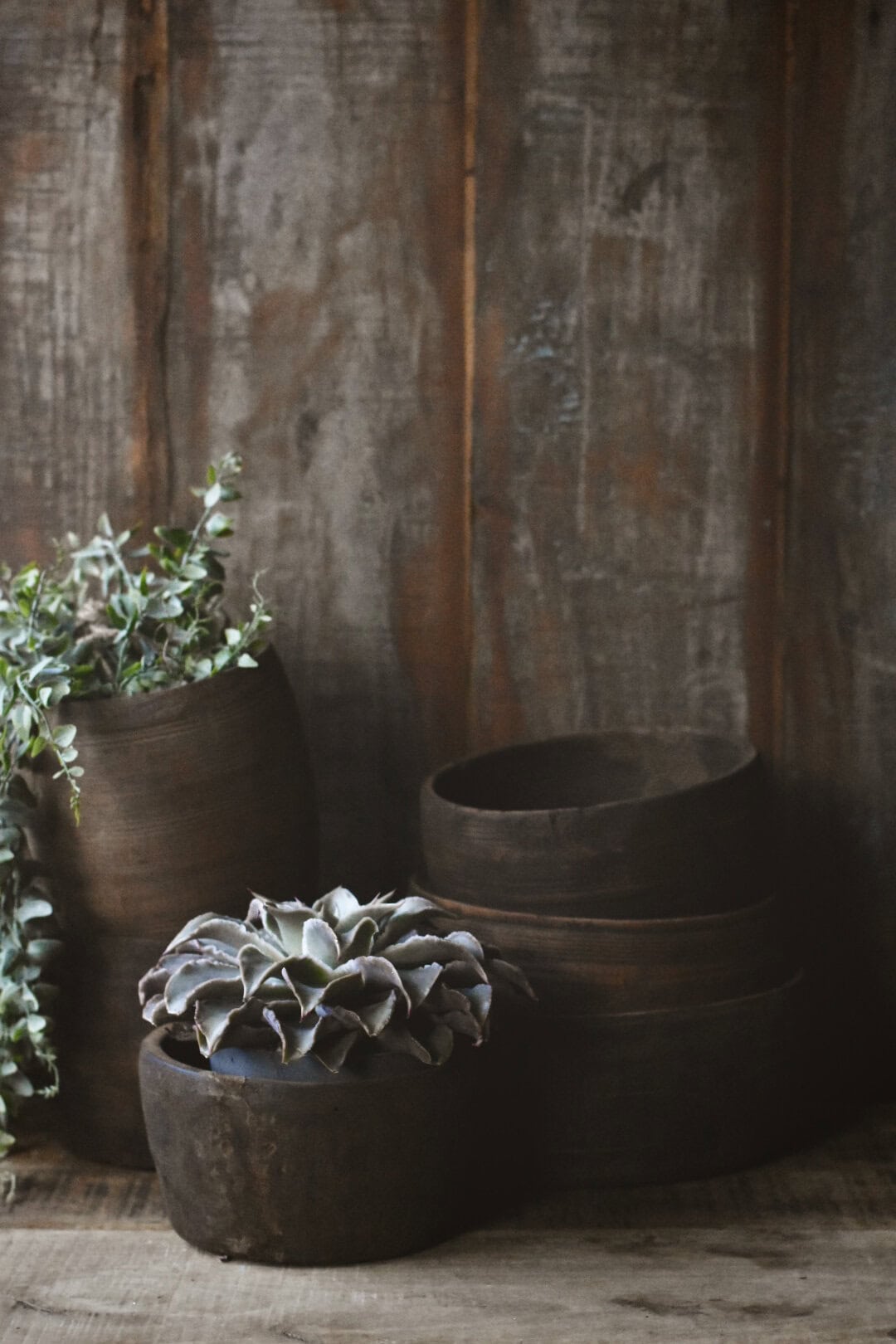 Vintage trepotte fra India i varierende størrelse. Hvert produkt er unikt. Bruk den som et dekorelement, på kjøkkenbenken til kjøkkenutstyr, eller til krydderurter på utekjøkkenet til sommeren.