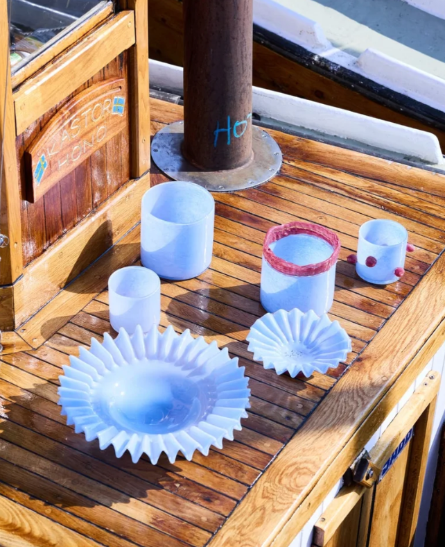Inspirert av plissert mote og naturens former minner Lori bolle om en blomst i ferd med å springe ut. Glasuren i kombinasjon med den kontrasterende, lave foten gir et uttrykk som både føles eksklusivt og lekent – som små kunstverk eller søtsaker pakket i blankt karamellpapir.