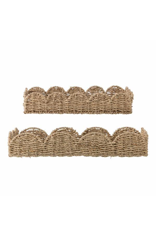 Brea serveringsbrett i stor størrelse er håndflettet i sjøgress og forsterket med jern for ekstra robusthet. Den bølgede kanten og den tette flettestrukturen gir brettet et karakterfullt og dekorativt uttrykk.