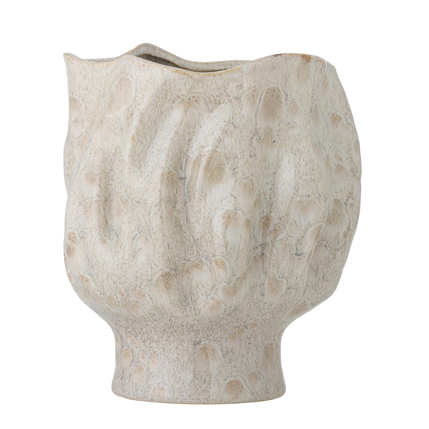 Adair vase fra Bloomingville er laget i stentøy med en vakker, reaktiv glasur i lyse nyanser. Den myke, organiske formen gir vasen et rolig og naturlig uttrykk som passer fint i mange ulike interiører.