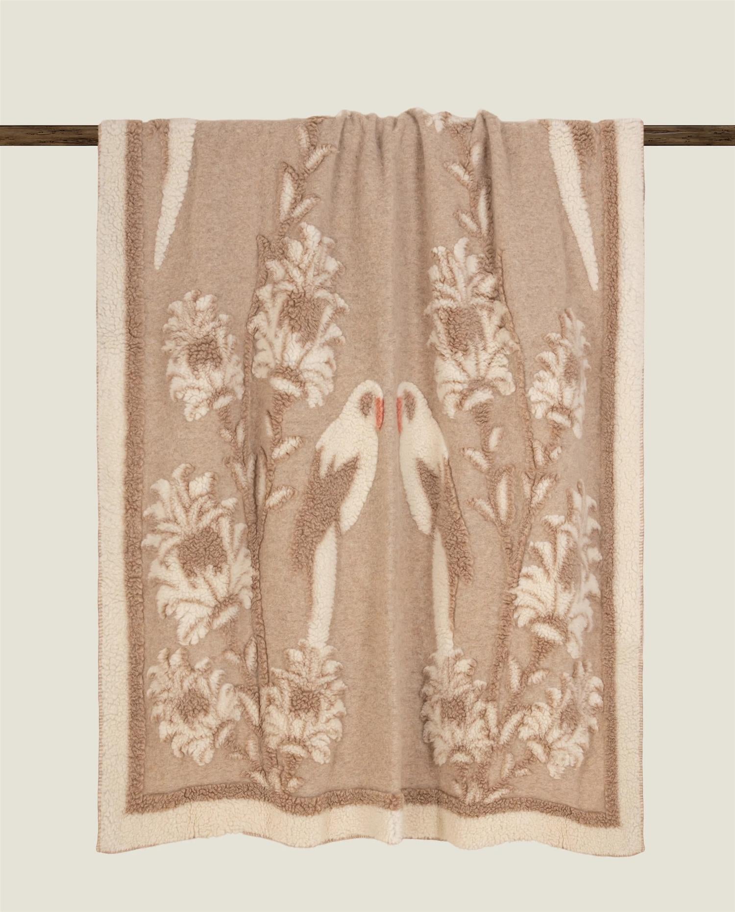 Den kokte ullen tilfører struktur, slitestyrke og gode isolerende egenskaper, mens alpakkafiberen gir en silkemyk overflate med lett glans og en naturlig evne til å holde på varmen uten å føles tung. Resultatet er et pledd som både er funksjonelt og luksuriøst.