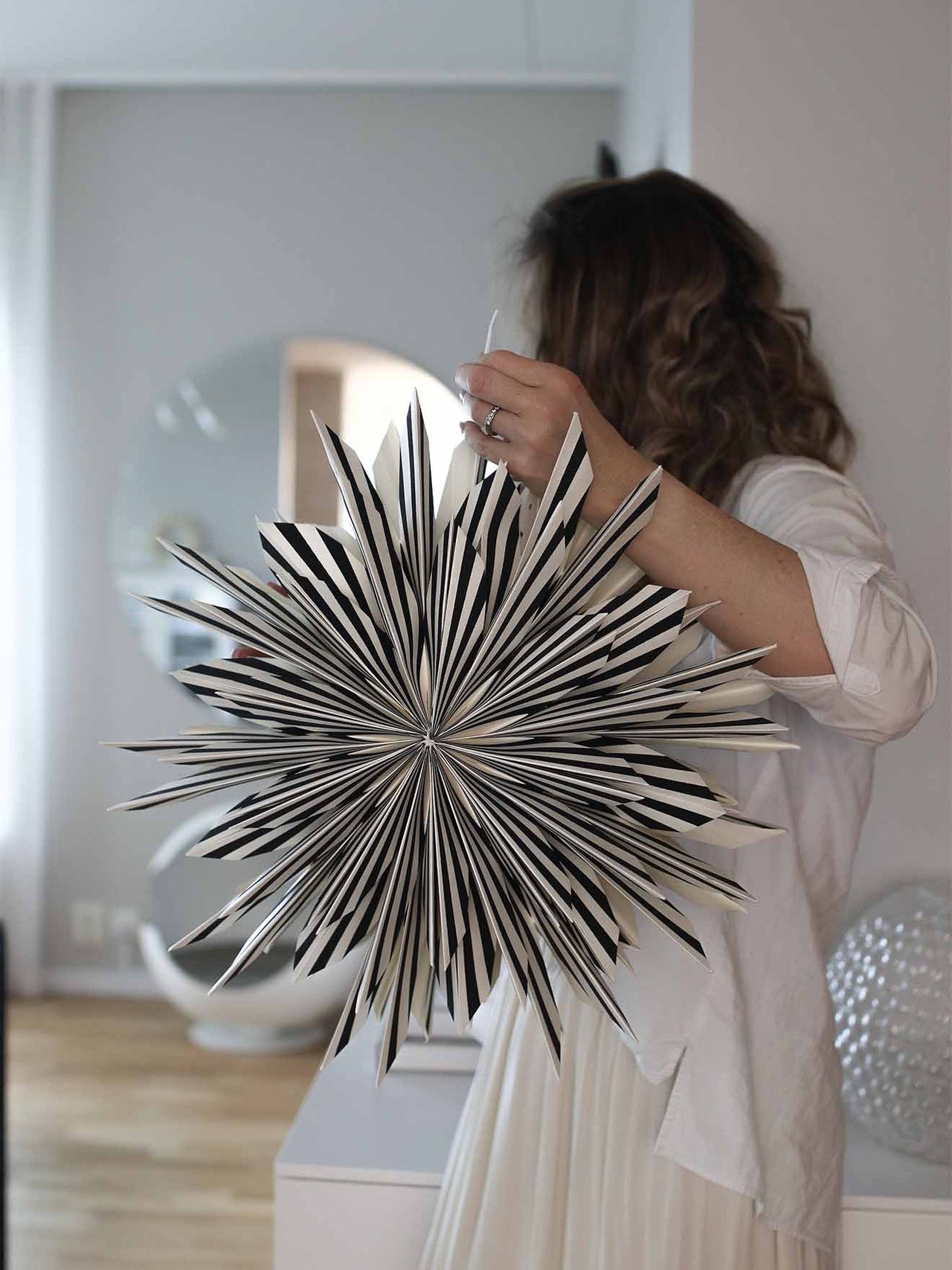 Navnet Leah betyr "løvinne," og denne stjernen lever virkelig opp til navnet sitt ved å innta en imponerende plass i rommet. Vi har benyttet ny teknologi for å skape et unikt og svært grafisk uttrykk i denne papirstjernen. Leah er en dristig dekorasjon som appellerer til de som søker spenning, samtidig som den skaper en omfavnende og varm atmosfære denne julen.
