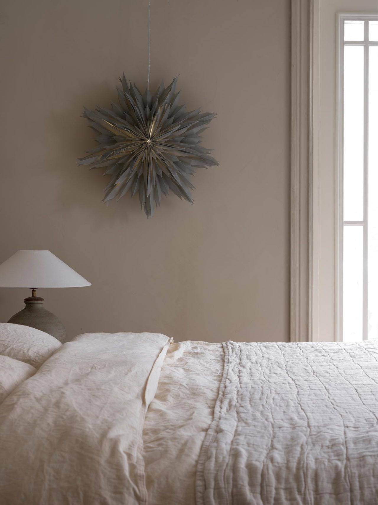 Oslo 60 grå har et design som minner om de nakne, nordiske fjelltoppene - helt til stjernen lyser opp og skaper en dramatisk scene som en vintersolnedgang. Denne håndfoldede stjernen er laget av grått halvgjennomsiktig papir, og limet som brukes er spesielt tilpasset det nordiske klimaet, slik at stjernen holder seg sammen selv under endringene i vinterklimaet. Stjernen leveres i en elegant eske, som både er praktisk for lagring og perfekt for gaveinnpakning.