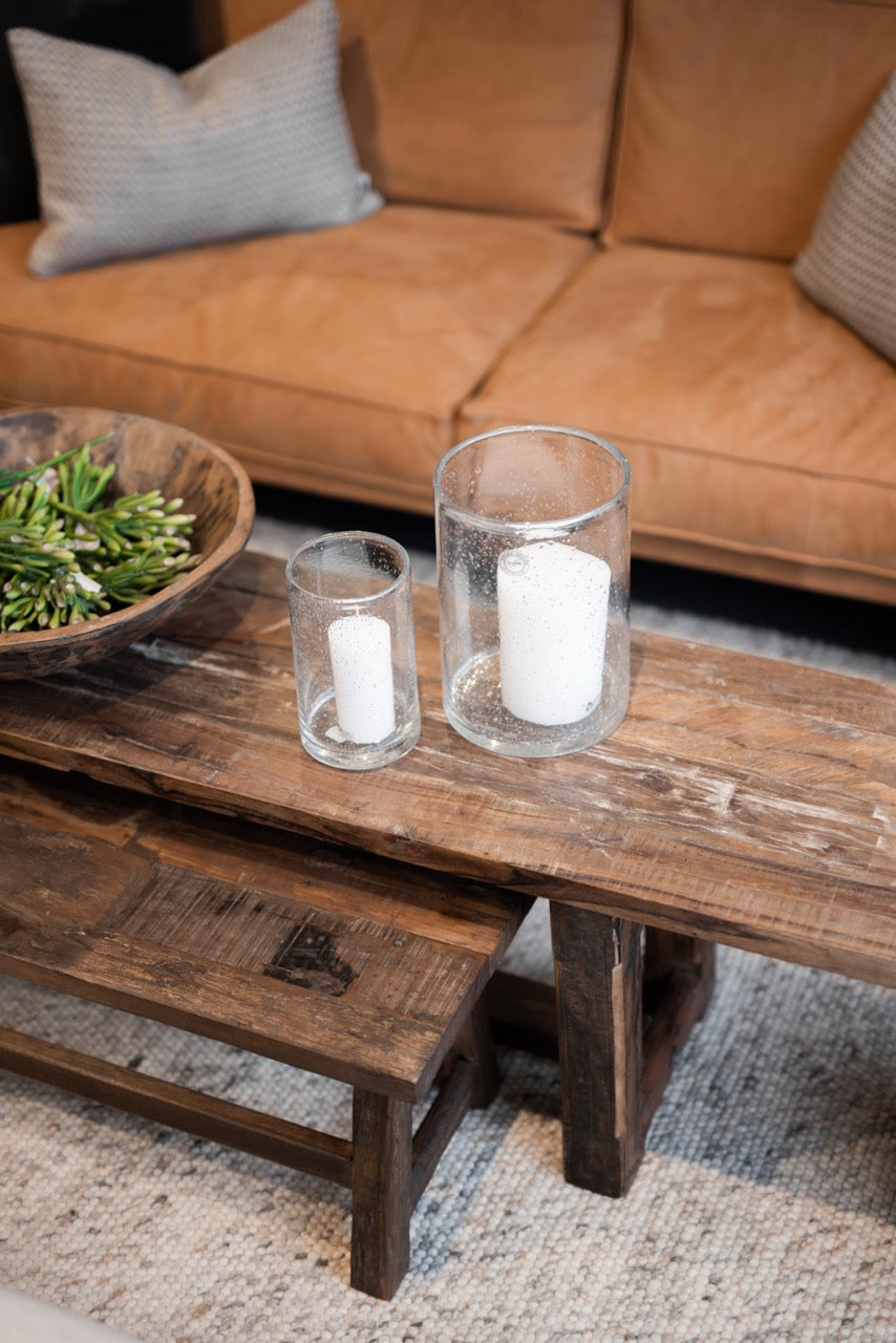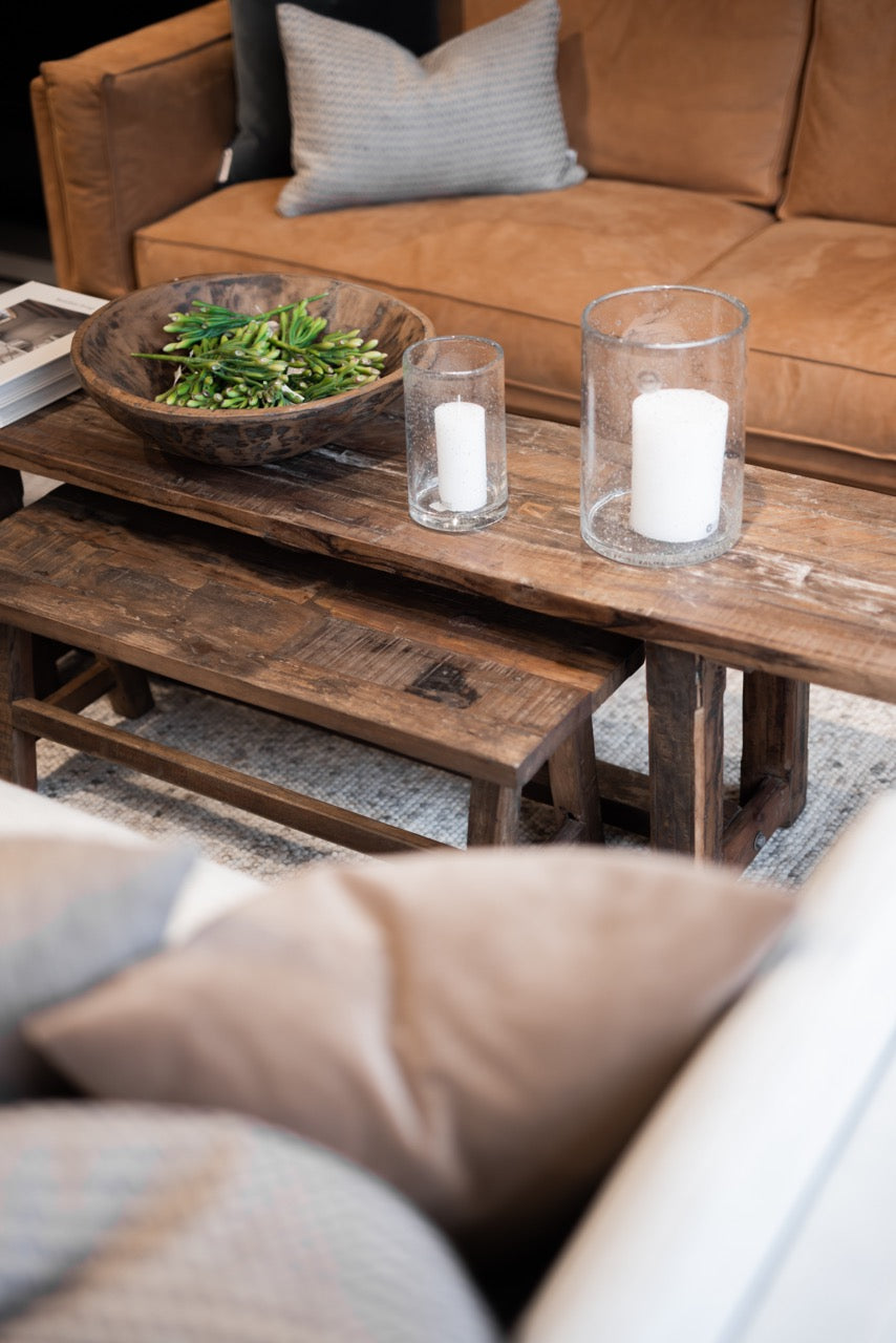 Benk i Old Wood fra Bruka Design. En rustikk benk i dyp brunfarge, laget av gammelt treverk. Kan brukes som sofabord og er perfekt både hjemme og på hytta. Et godt valg hvis du skal mykne opp et stramt interiør.