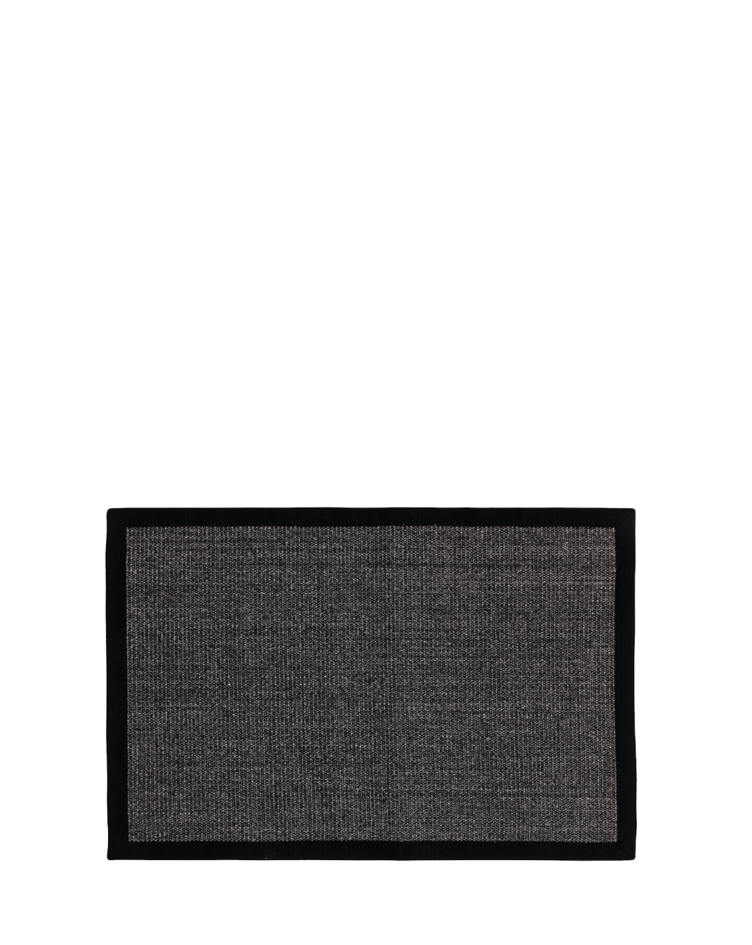 Jenny sort dørmatte med bomullskant fra Dixie. Slitesterk dørmatte i sisal med bomullskant med underside i latex for antiskli. Matten for innendørs bruk, og er maskinvevet i India.