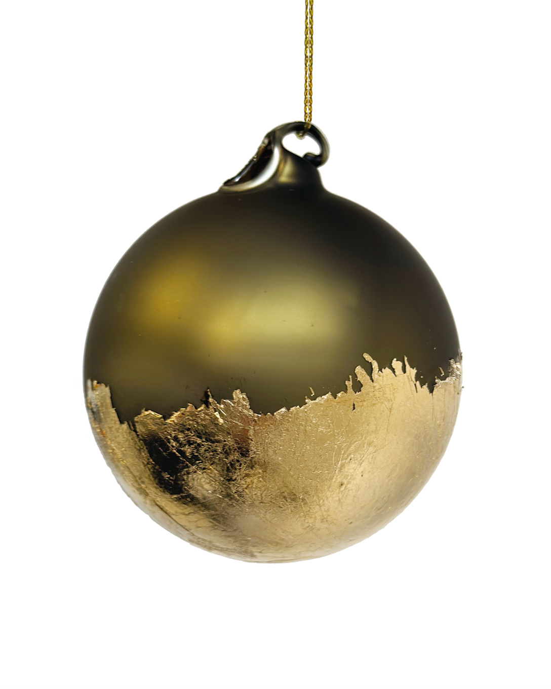 Glasskula har en diameter på 8 cm og har en matt grønn farge som gir den et elegant utseende. I bunnen av kula er det delikate gullblader som legger til en ekstra touch av luksus og eleganse.