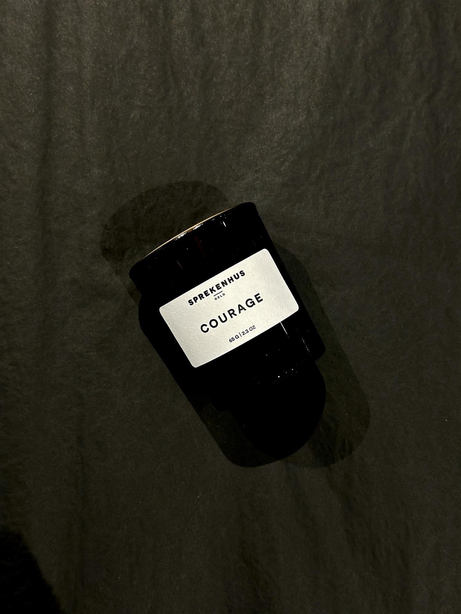 Courage 65g er et duftlys som gjennom en rik duft og et unikt estetisk uttrykk har blitt laget for å inspirere. Duften av patchouli og vannmelon innleder og deretter amber og musk. Denne duften tar sansene på en spennende reise.