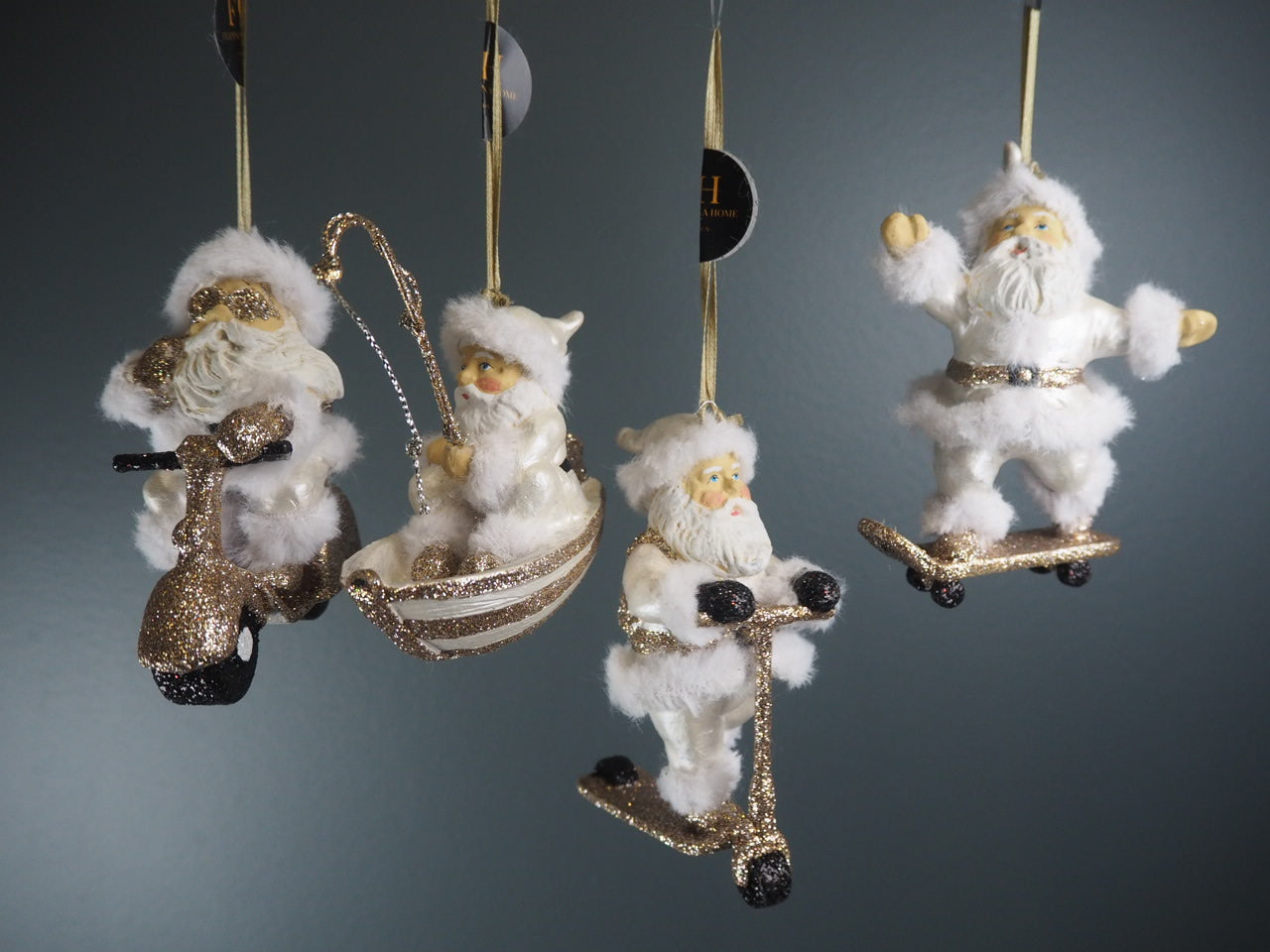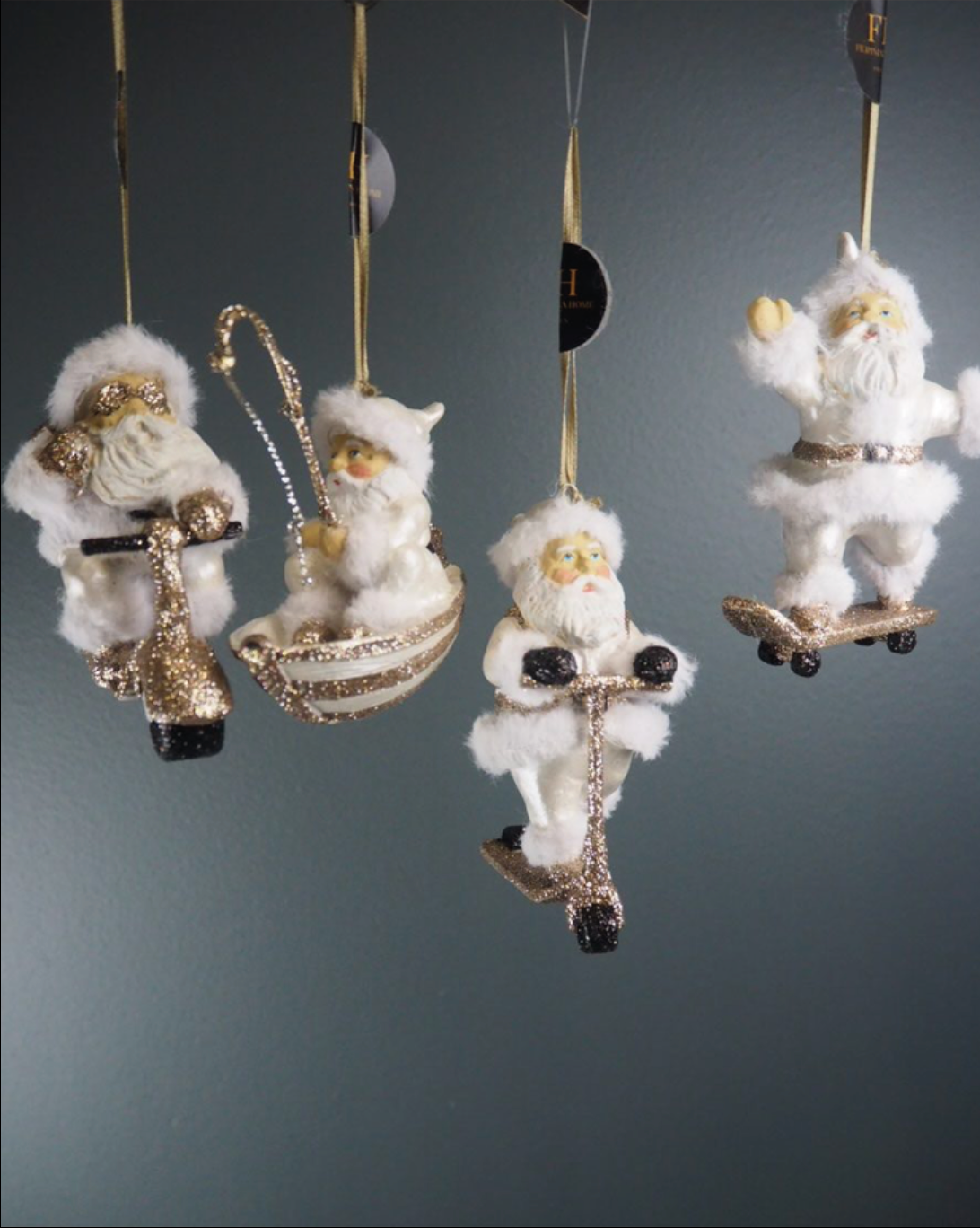 Nisser i aksjon! Disse herlige ornamentene av lekne nisser sprer glede og moro. Nissen er iført hvitt antrekk med elegante detaljer i champagnefarget glitter. Denne sitter i en liten robåt og fisker etter julegodteri. Med en størrelse på 5x10 cm hver, passer disse nissene perfekt på juletreet ditt og legger til en ekstra dose sjarm og feststemning. La dem være en del av dine julefeiringer og minne deg om den lekne siden av julen.