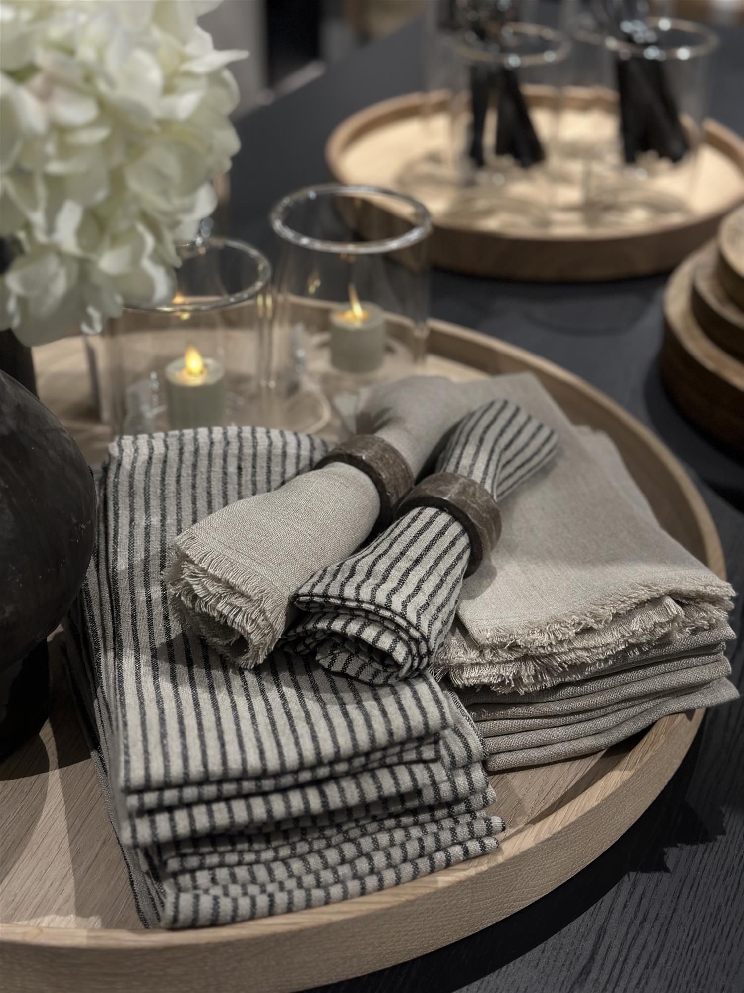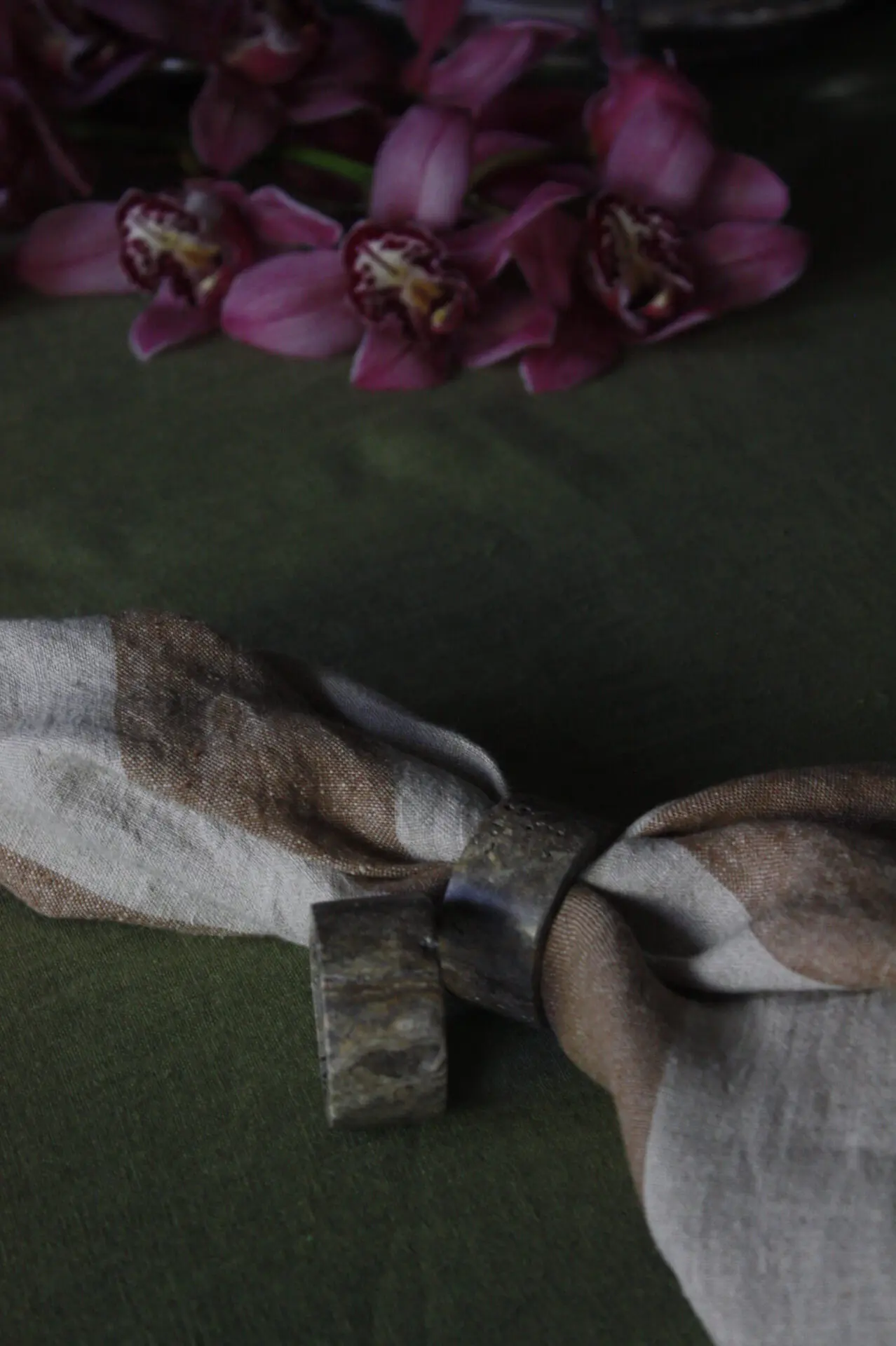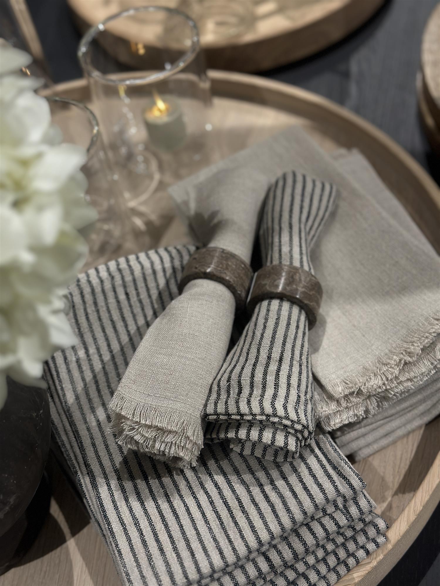 Serviettring i travertin, som er en type kalkstein. Fint å ha rundt en linserviett i borddekking sammen med vasene og lysestakene i samme serie.