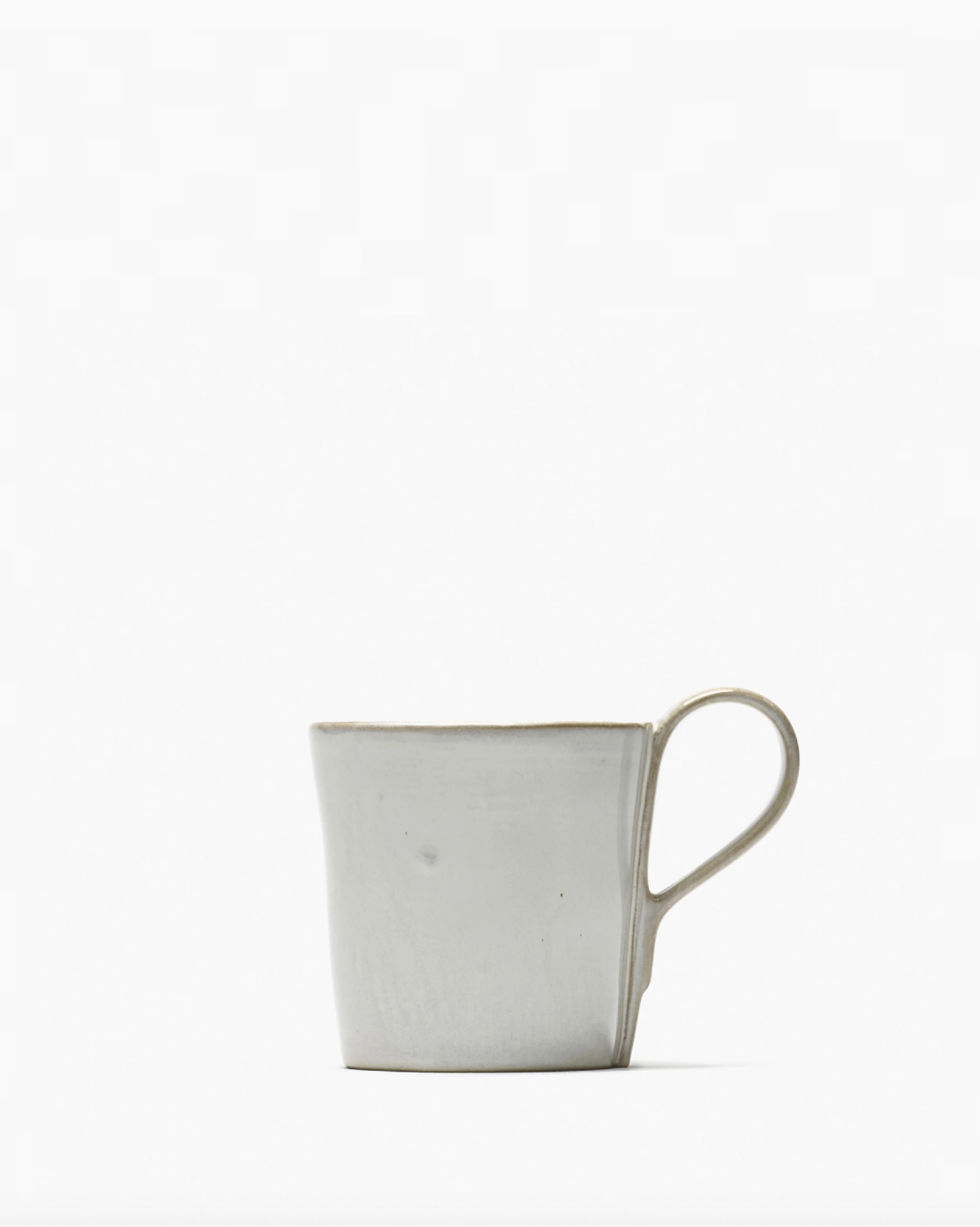Kaffekopp med håndtak i La Mére - serien fra Serax. Disse koppene har et litt nostalgisk preg på grunn av steintøyet og ufullkommenhetene, men de ser nyskapende ut takket være designet med et håndtak og off-white glasurfinish.