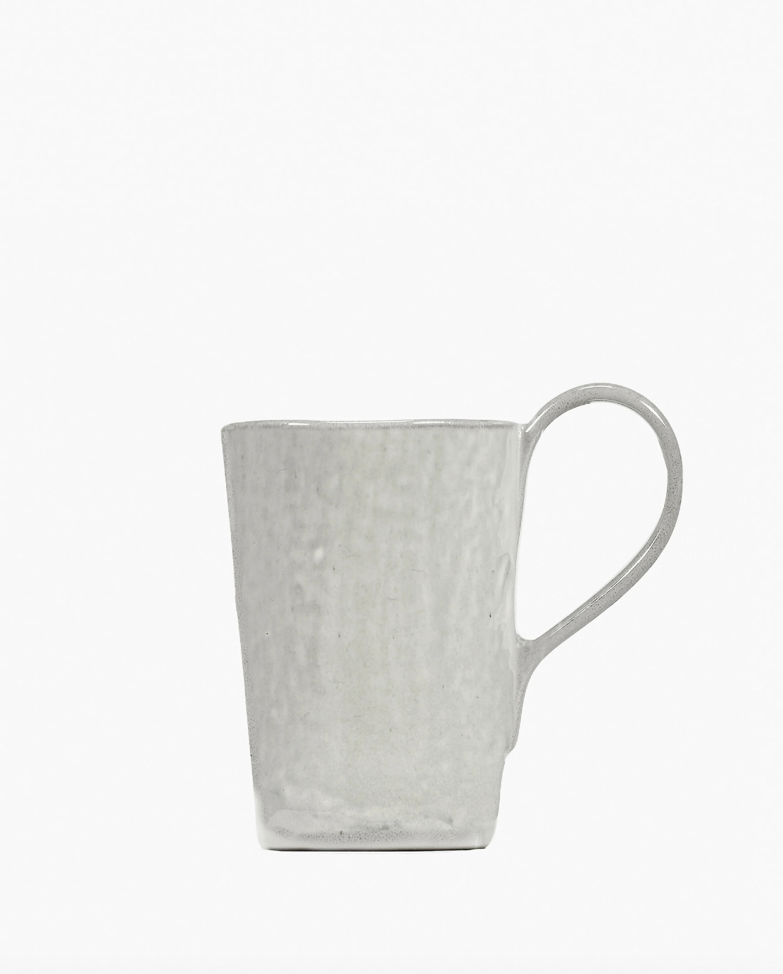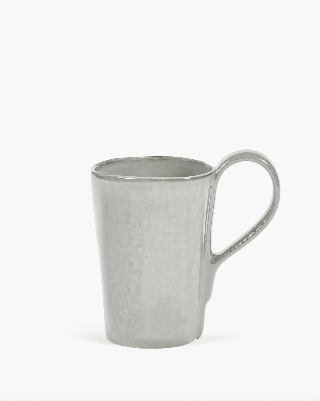 Stort krus med håndtak i La Mére - serien fra Serax. Disse koppene har et litt nostalgisk preg på grunn av steintøyet og ufullkommenhetene, men de ser nyskapende ut takket være designet med et håndtak og off-white glasurfinish.