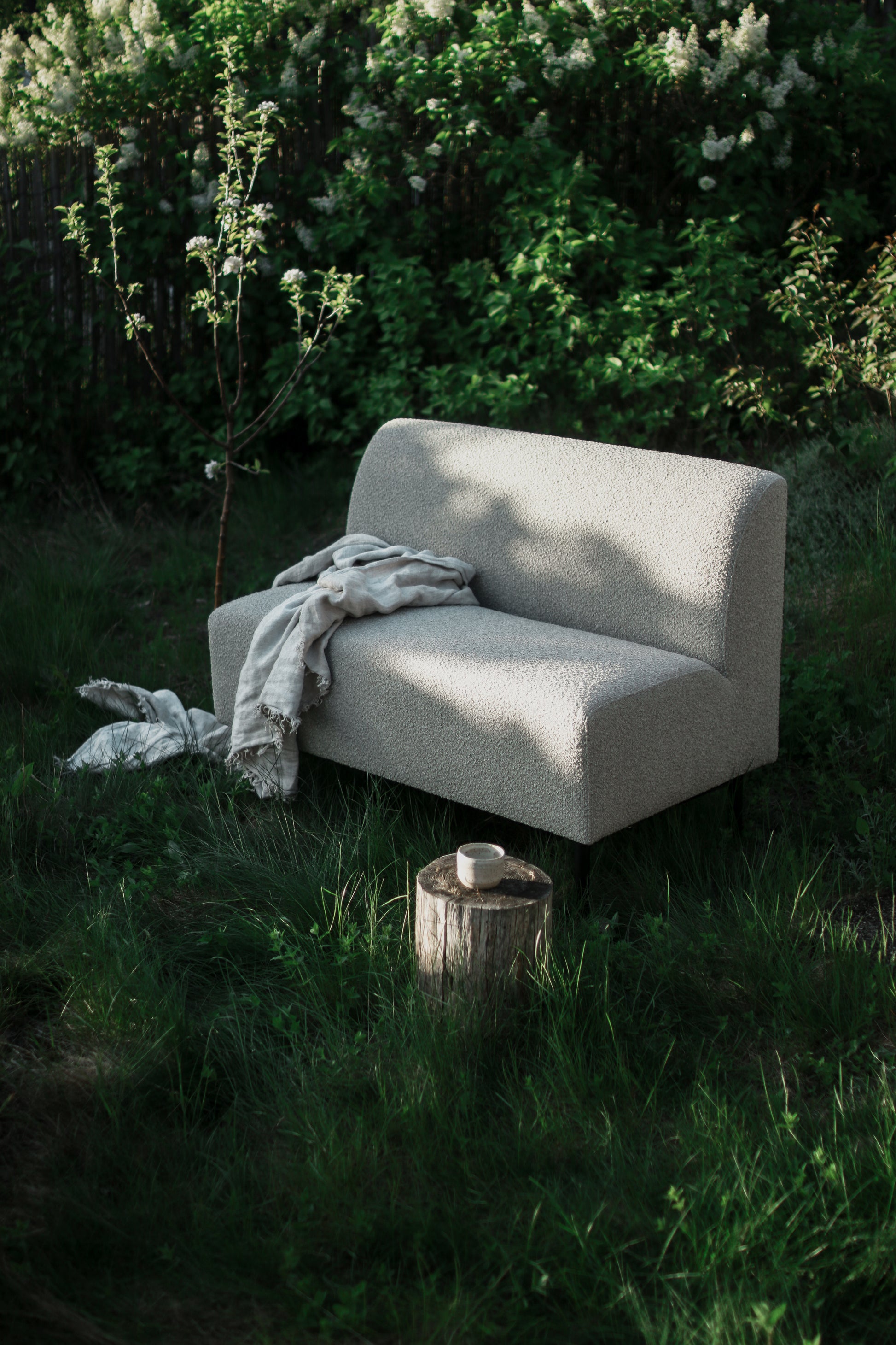 Aften 62x110 outdoor dining sofa fra Ygg & Lyng. Aften ble først designet som en behagelig og allsidig innendørs spisesofa, men er nå også laget med materialer som tåler utendørselementene!