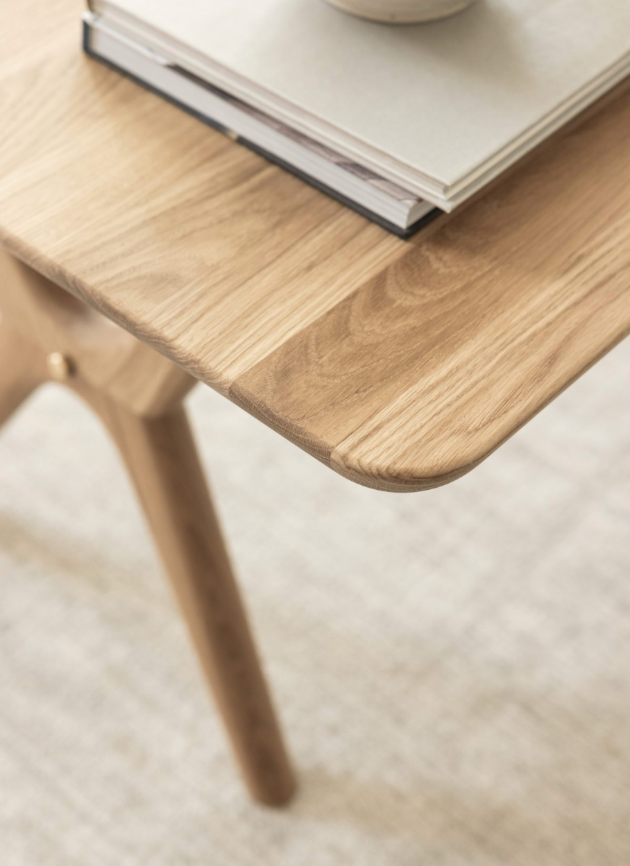 Amelia sofabord fra Kristensen & Kristensen. Amelia er oppkalt etter den første kvinnelige piloten som fløy over Atlanterhavet. Bordet har myk en utførelse med stødig holdning i heltre. Amelia har avrundede hjørner og er helt uten skarpe kanter som gir bordet et elegant og tidløst utseende. Bordet kommer i heltre ask eller eik, i to størrelser, med eller uten detaljer i messing, og 12 forskjellige farger. Ta kontakt eller kom innom oss for å se hele utvalget og treprøvene.