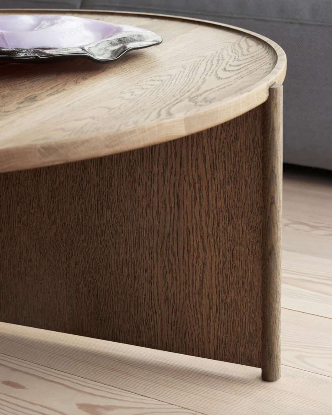 Bordet er laget av heltre eik og eikefiner, og er tilgjengelig i røkt eik eller lys oljet eik. Cling Salongbord leveres flatpakket, noe som gir det et lavere karbonavtrykk og gjør det til et miljøbevisst valg.