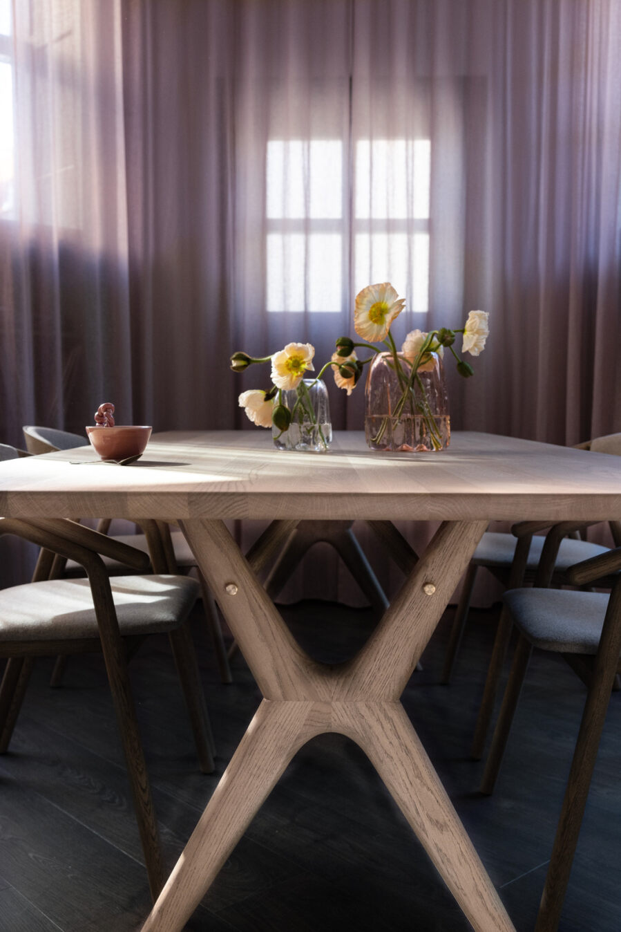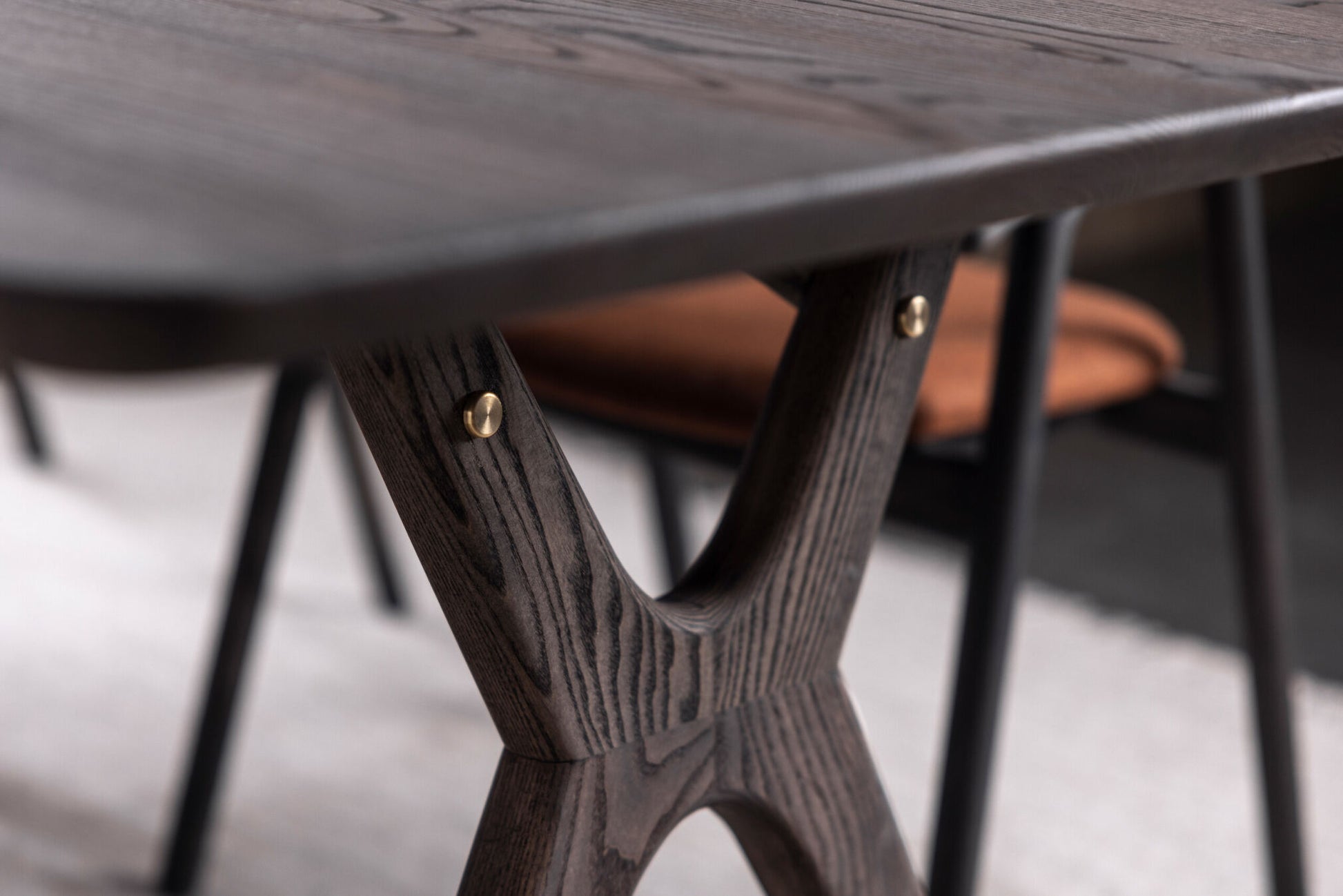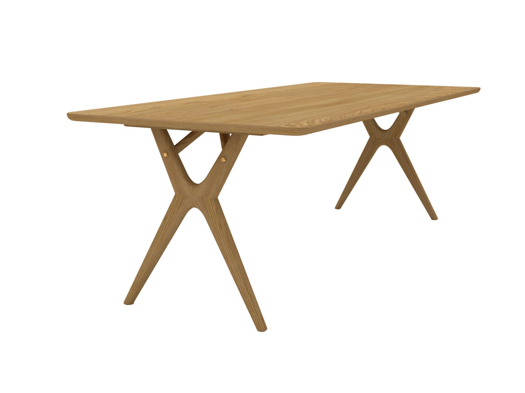 Amelia spisebord fra Kristensen & Kristensen. Amelia er oppkalt etter den første kvinnelige piloten som fløy over Atlanterhavet. Bordet har myk en utførelse med stødig holdning i heltre. Amelia har avrundede hjørner og er helt uten skarpe kanter som gir bordet et elegant og tidløst utseende. Bordet kommer i heltre ask eller eik, med eller uten detaljer i messing, en rekke størrelser, med og uten tilleggsplater, og farger. Ta kontakt eller kom innom oss for å se hele utvalget og treprøvene.