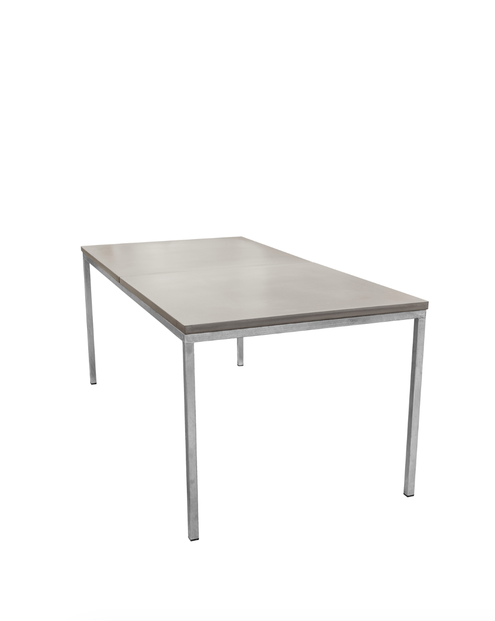 Spisebord i betong fra MBJ Design. Mats Bernhard Jönsson startet MBJ Design i 1996, og bruker et minimalistisk uttrykk i sin serie betongmøbler. Spisebordet er produsert i minimalistisk ånd, med håndstøpte autentiske betongplater klare til bruk med et galvanisert standardunderstell.