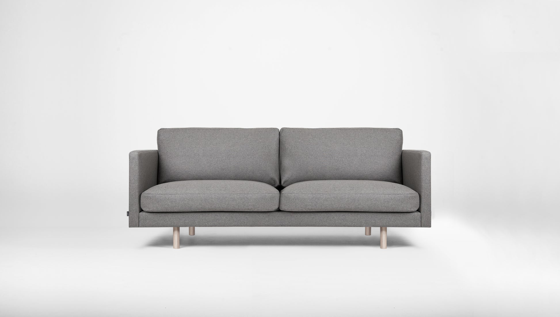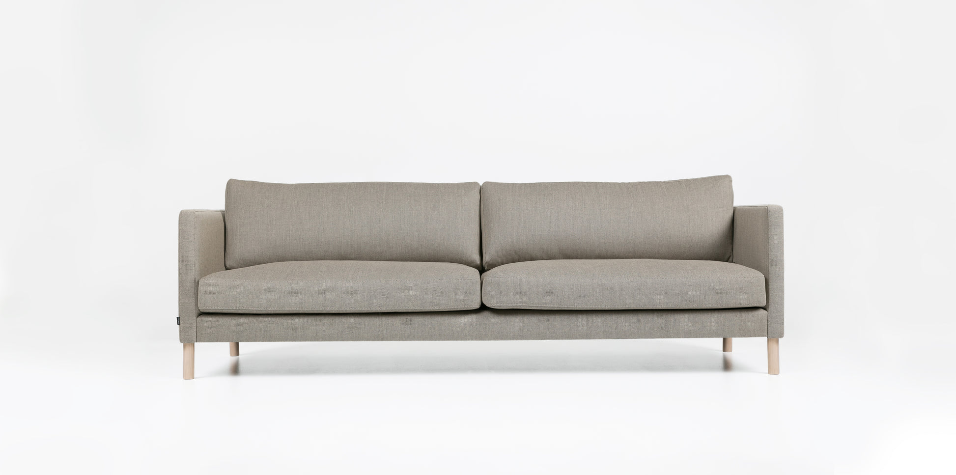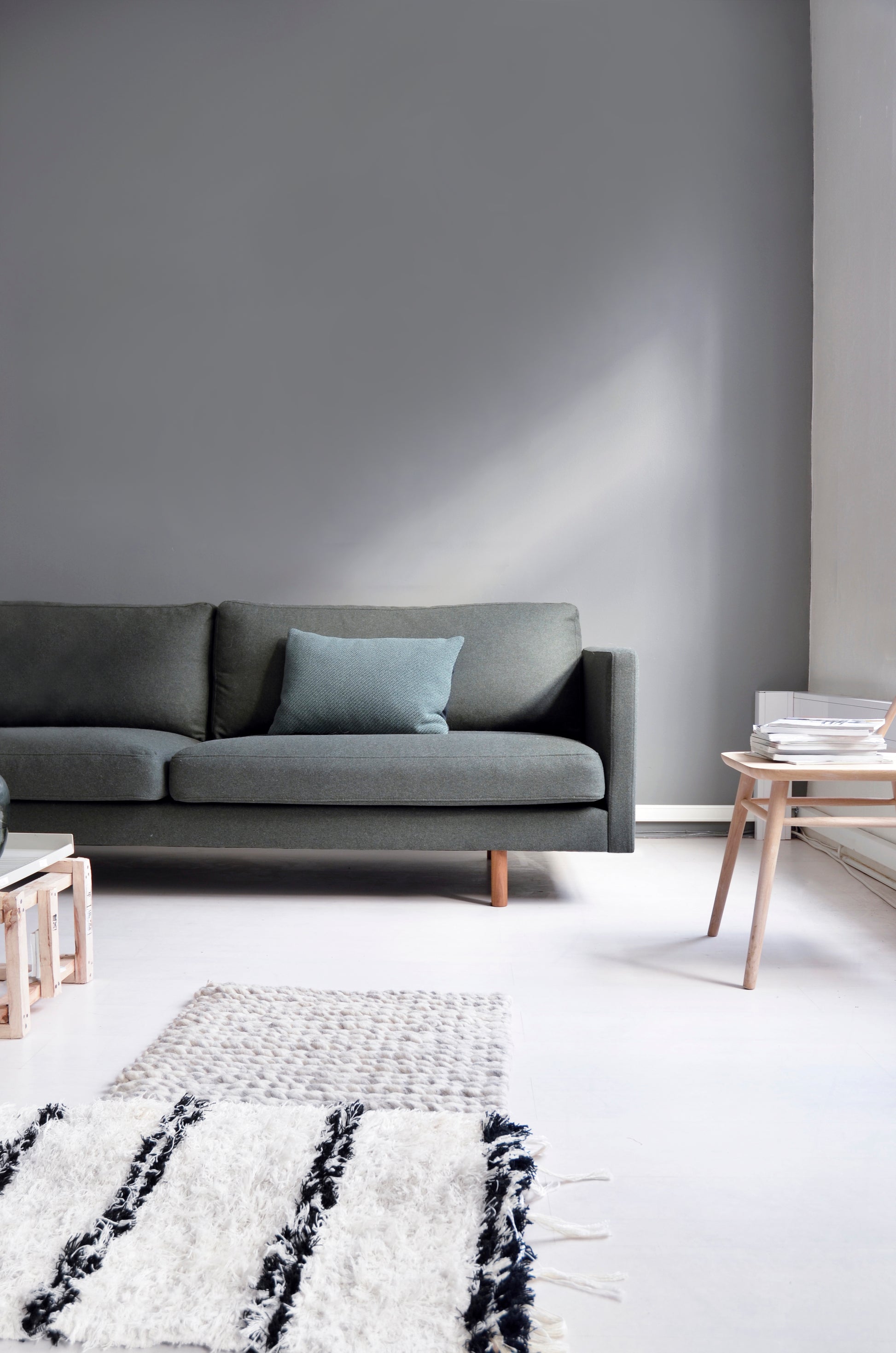 Svev sofa fra Ygg & Lyng. Tidløs og moderne på samme tid, passer den inn i ethvert interiør. De komfortable, koselige og tykke dunputene står i kontrast til de slanke og rette linjene på rammen. Sofaens karakter endres av ditt valg av stoff; gjør den nordisk og varm med naturlig ull, eller dramatisk med fløyelsstoffer. Plasseringen av de solide eikebena gir den et svevende uttrykk. En alternativ plassering av bena i hjørnene er også mulig.