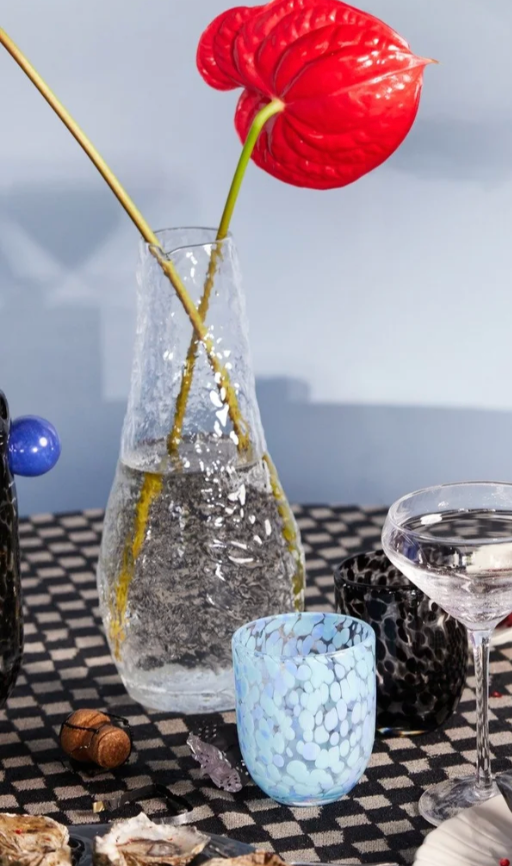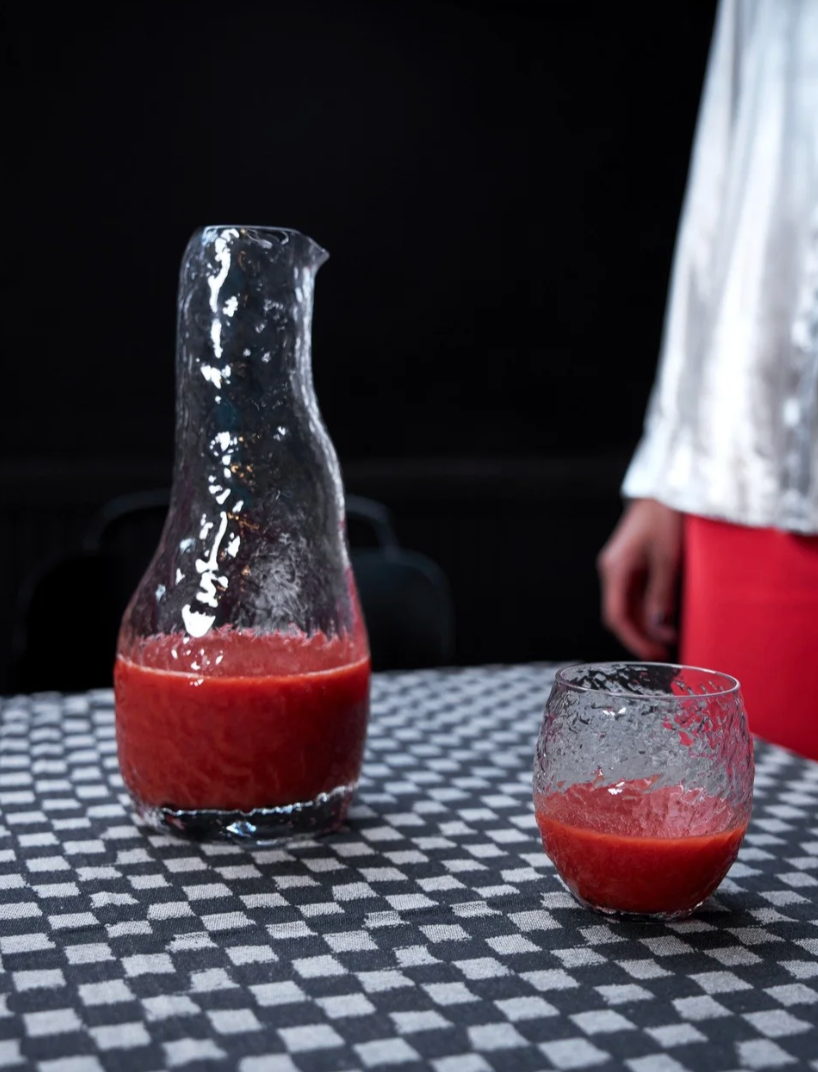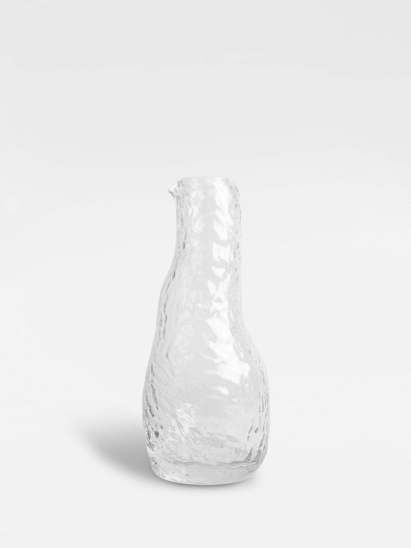 Swan fra ByON er en munnblåst karaffel inspirert av svanens elegante silhuett. Den kan brukes både som karaffel og vase, og er like vakker uansett funksjon. Hver del er håndlaget og unik, med en subtil tekstur i glasset som fanger og reflekterer lyset på nydelig vis.